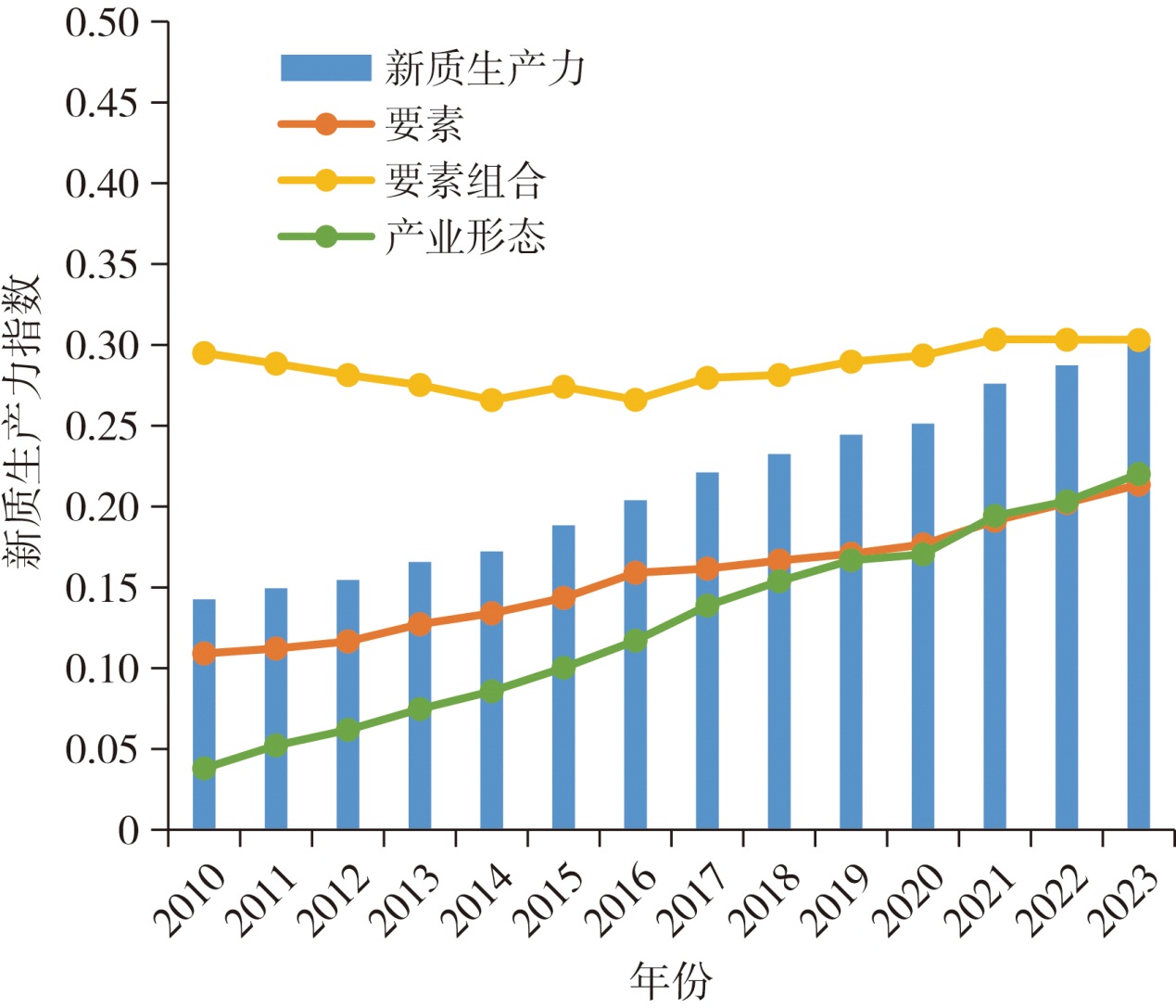新质生产力是实现高质量发展的必然要求。文章基于新质生产力的内涵,从要素、要素组合、产业形态3个维度构建了新质生产力水平测度指标体系,测算了2010—2023年中国31个省份的新质生产力水平,考察了新质生产力的时空演进及溢出效应。结果表明:①中国新质生产力水平总体呈上升态势,但增长速度较缓,产业形态是新质生产力发展的短板。②中国新质生产力水平区域差异明显,处于东部>中部>西部>东北的“东强西弱、东北滞后”的空间分异格局,但各省份新质生产力水平逐渐向更高等级进阶。③中国新质生产力水平总体差异逐渐缩小,区域间差距贡献率最大。④中国新质生产力发展存在显著的空间正相关性,呈“高—高”“低—低”的集聚特征;新质生产力发展呈“俱乐部趋同”特征,且存在路径依赖,跨等级跃迁概率较低。⑤新质生产力发展受经济、制度、教育和交通等因素的影响,市场化水平、高等教育水平和交通便利水平对新质生产力发展具有正向空间溢出效应,经济发展水平和法治化水平对新质生产力发展具有负向空间溢出效应。
