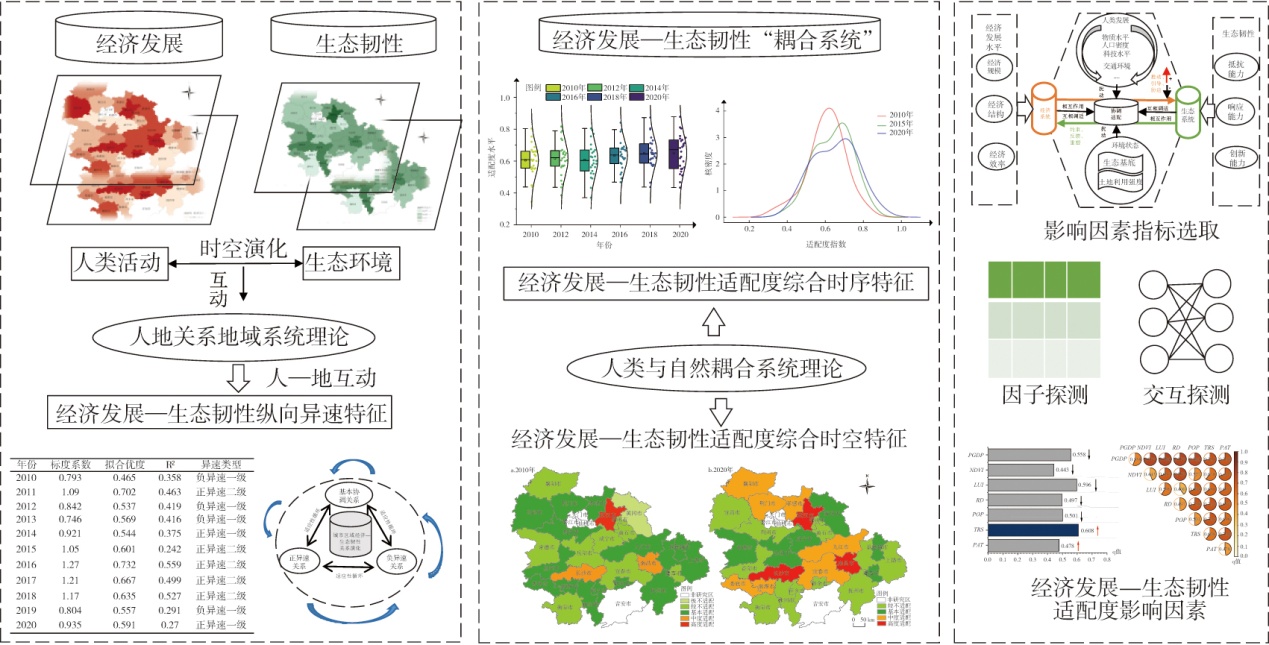 文章以长江中游城市群为案例地,运用熵值法测算其2010—2020年经济发展水平和生态韧性指数,采用综合适配度和地理探测器探析两者适配发展的时空演化特征及影响因素。结果表明:①研究期内长江中游城市群经济发展水平具有积极的发展态势,空间非均衡性特征显著,呈现“高—高”“低—低”的空间集聚特点;生态韧性处于中等及以上水平的城市数量显著增加,整体呈“东高西低”的空间格局,且生态韧性相对增速明显高于经济发展水平。②长江中游城市群经济发展水平与生态韧性适配度明显提升,“中度适配”与“高度适配”类型城市逐渐增多,且中高适配水平类型呈现出从省会城市向周边地级市扩散的特点。③土地利用强度、人均GDP和产业结构是影响经济发展水平与生态韧性适配度的主要因素,人均GDP与土地利用强度交互作用的解释度最高。