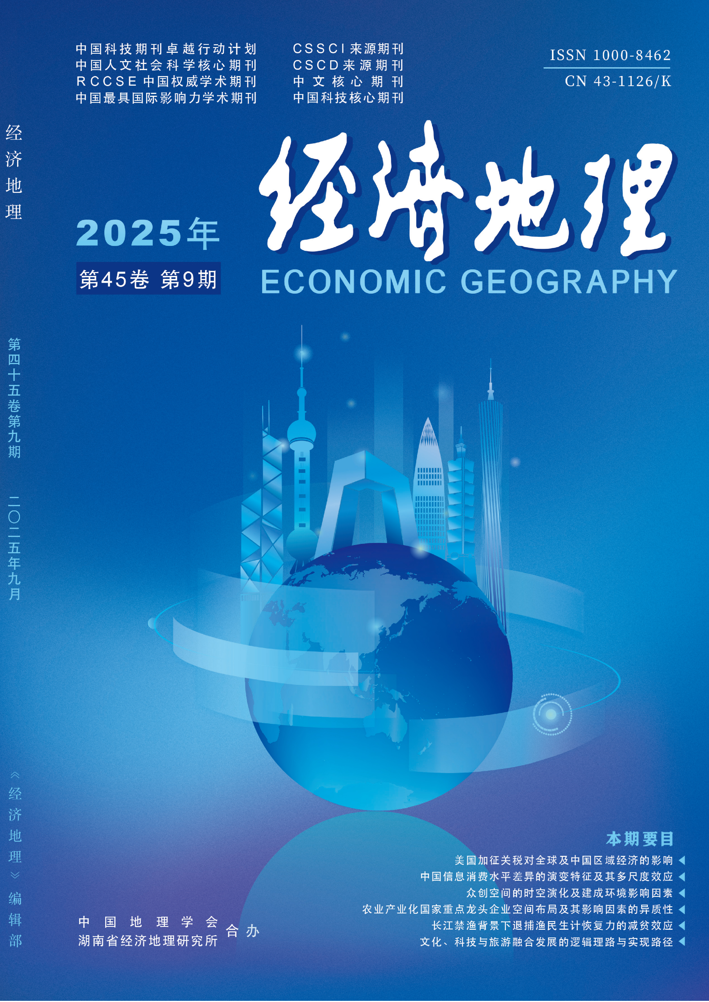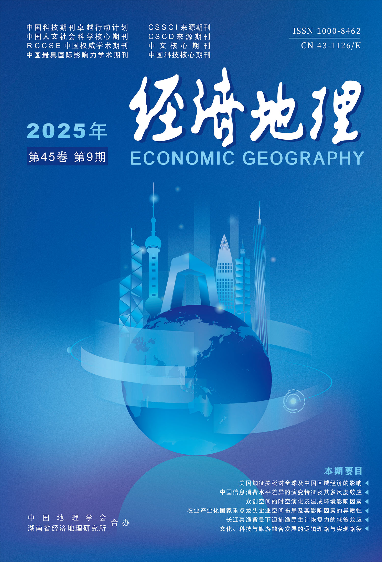 三大城市群是创新驱动和高质量发展的核心区域,探究专精特新企业空间格局及其成因对推动区域产业结构优化及“补链强链”具有重要意义。文章基于2019—2024年工业和信息化部认定的6批次专精特新企业数据,运用核密度分析、标准差椭圆、空间探索性分析等方法,探究中国三大城市群地区专精特新企业的空间格局,并从新质生产力视角构建影响因素框架,利用最优参数地理探测器和BRT模型分析其影响因子。结果表明:①京津冀、长三角、珠三角城市群专精特新企业分别呈“单核心”“多核心”和“双核心”的集聚格局,随着批次推进,分布中心依次呈“W型”“又型”和“菱型”变化趋势。制造业和科技服务业是三大城市群专精特新企业的主要支柱,其中制造业在空间上呈现“核心—边缘”特征,科技服务业则呈现集中性特征。②三大城市群的专精特新企业整体呈现较弱的空间正自相关性和空间依赖性,且其分布水平的空间俱乐部收敛特征不显著。③三大城市群专精特新企业的空间格局是新质劳动者、新质劳动对象和新质劳动资料相互作用的结果,其中科学研究投入、能源消耗、工业污染程度和经济产出等因素是其空间分布的核心驱动因素。各影响因子之间存在显著的非线性增强作用,但其交互作用差异较大。