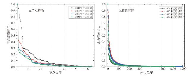 表1 “一带一路”贸易网络节点韧性测度排名前10位国家Tab.1 Top 10 countries of resilience indicators in the “Belt and Road” trade networks |