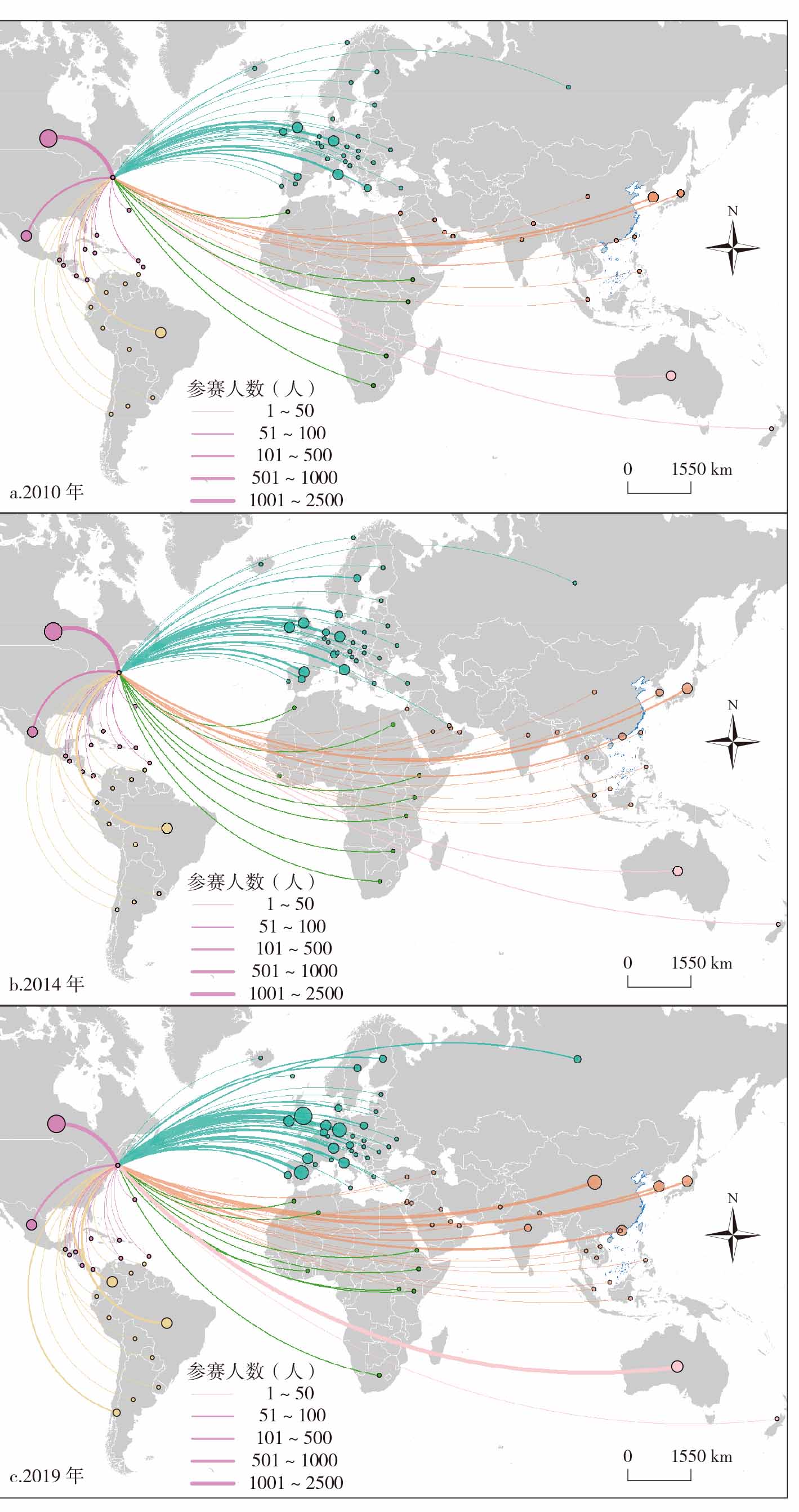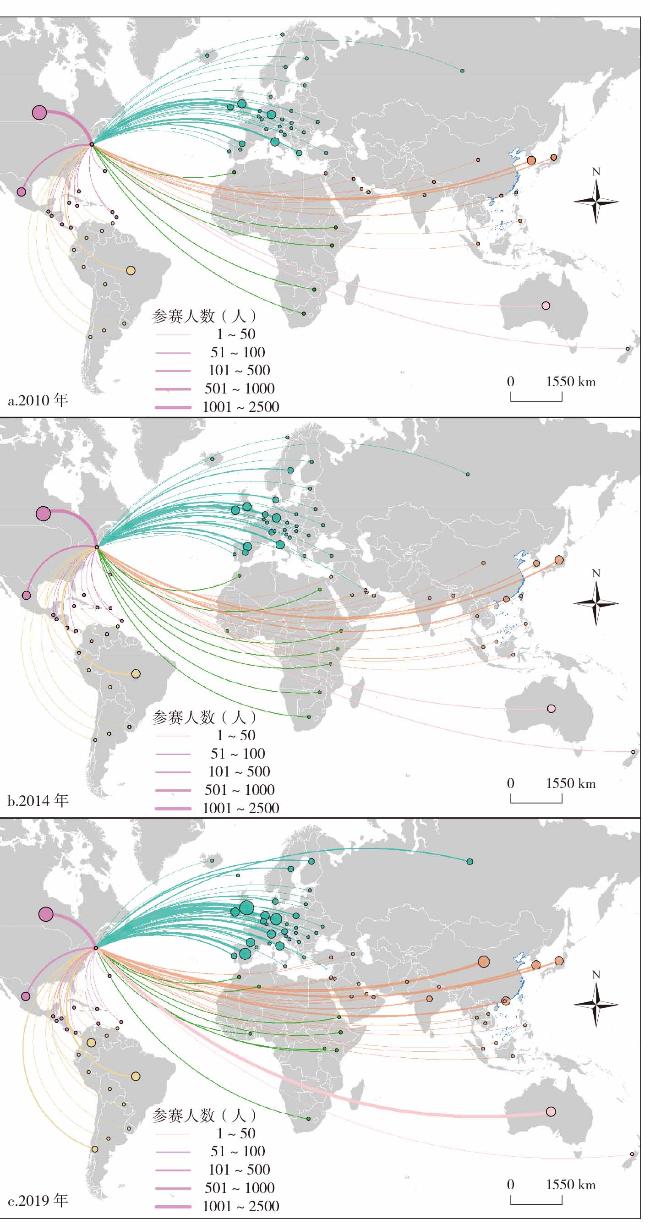 全球体育联系网络时空特征及其影响因素——以波士顿马拉松参赛者为例