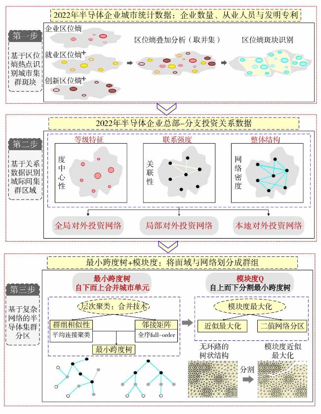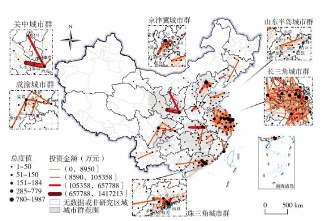 文章基于中国半导体企业—分支的投资关系,运用区位商、最小跨度树与模块度等复杂网络的图分割技术,构建涵盖256个地级及以上城市的中国半导体产业网络,并在分析其空间集聚特征和联系强度的基础上划分出一个可供参考的中国半导体集聚区分区方案。研究发现:①中国半导体产业呈现集聚为主的空间分布模式,集聚水平呈现出东高西低、南高北低非均衡发展态势。②全局对外投资网络的地理分布呈现为钻石结构与菱形模式。全局本地投资集聚区表现为显著的东西差异,东部本地集聚区为双核或多核牵引型,西部本地集聚区表现为单核牵引型。③在全国6大区域集聚区中,长三角的区域一体化水平最高,珠三角域内联系强度密集但珠江东岸的极化现象显著,京津冀表现为梯度双核驱动模式,山东半岛依托济南与青岛都市圈形成横向联系,关中与成渝地区表现为双核增长极集聚区模式。④中国半导体产业的空间集聚区可划分为南方、东部、北方和西部4个一级分区和20个二级分区。