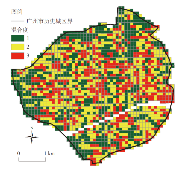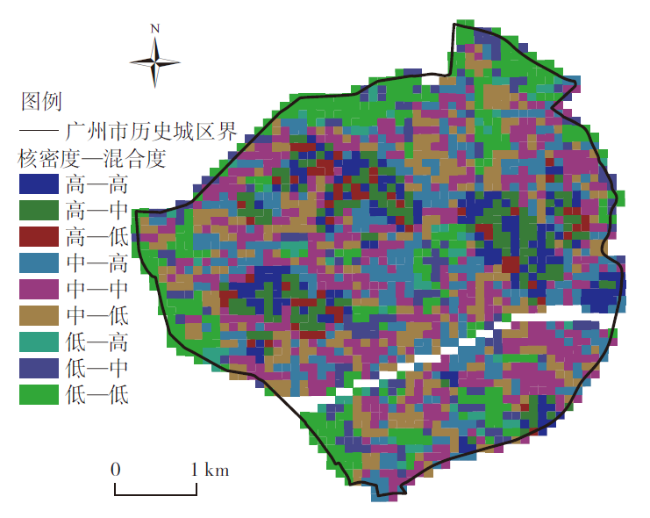 核密度<混合度 | 中—高 | 设施缺乏区 | 342 | 549 |