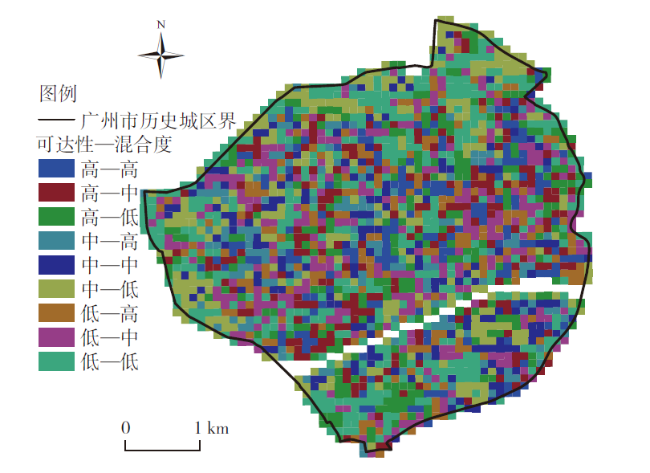 图6 旅游要素混合度与街道可达性交叉对比结果Fig.6 Results of the cross-comparison between the mixing degree of tourism elements and the street accessibility |