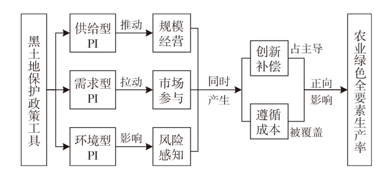 This study categorizes black soil protection policy instruments into three types: supply-oriented type,demand-oriented type, and environment-oriented type. Based on the data of 297 new-type agricultural management entities in 5 counties and districts,this study analyzes the effects of black soil protection policy instruments on agricultural green total factor productivity (GTFP), and further examines its mechanism and geospatial heterogeneity. The results indicate that: 1) Black soil protection policy instruments and their combinations have achieved the innovation compensation effect,and significantly enhance agricultural GTFP. 2) The marginal effect of the demand-oriented policy instruments on promoting agricultural GTFP is the largest, followed by the environment-oriented type,and the supply-oriented type is the least. Currently,the using proportion of policy tools is 18.8% for the demand-oriented type, 30.0% for the environment-oriented type,and 51.2% for the supply-oriented type,which indicates that market mechanisms are more efficient than direct government intervention. 3) The effect of black soil protection policy instruments on agricultural GTFP is geographically heterogeneous. The marginal effect of the supply-oriented policy instruments from high to low is Keshan,totalsample,Longjiang respectively. The marginal effect of the demand-oriented policy instruments from high to low is Beilin,Keshan,Longjiang, total sample, Lanxi, Yi'an respectively. The marginal effect of the environment-oriented policy instruments from high to low is Keshan, Longjiang,Yi'an,totalsample,Lanxi,Beilin respectively. 4) The supply-oriented policy instruments improve agricultural GTFP by facilitating scale management,the demand-oriented policy instruments improve agricultural GTFP by stimulating market participation,and the environment-oriented by influencing risk perception.