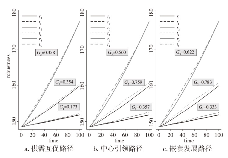 文章基于周期协调视角构建了区域协调网络,运用融合社会网络分析、ERGM模型及路径模拟方法探究了网络特征、传导机制及发展路径优化问题。研究发现:①网络特征方面,我国区域协调水平波动上升,呈现关系“南密北疏”、速度“南快北慢”的格局;京津冀等传递型城市群侧重“先富带动后富”的非均衡发展模式,珠三角等互动型城市群侧重“互惠互利”的均衡发展模式。②传导机制方面,行政区划作用优于经济区划,中央垂直治理优于地方分散治理,生产、投资及消费联动“以高带低”地促进协调互补。③发展路径优化方面,“供需互促的循环联动路径”具有长期持续性,“中心城市的引领发展路径”的先发优势较强,两者结合进一步提升稳定性;“城市群的载体依托路径”以群际层面的平台支撑作用为主,群内作用较弱。