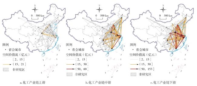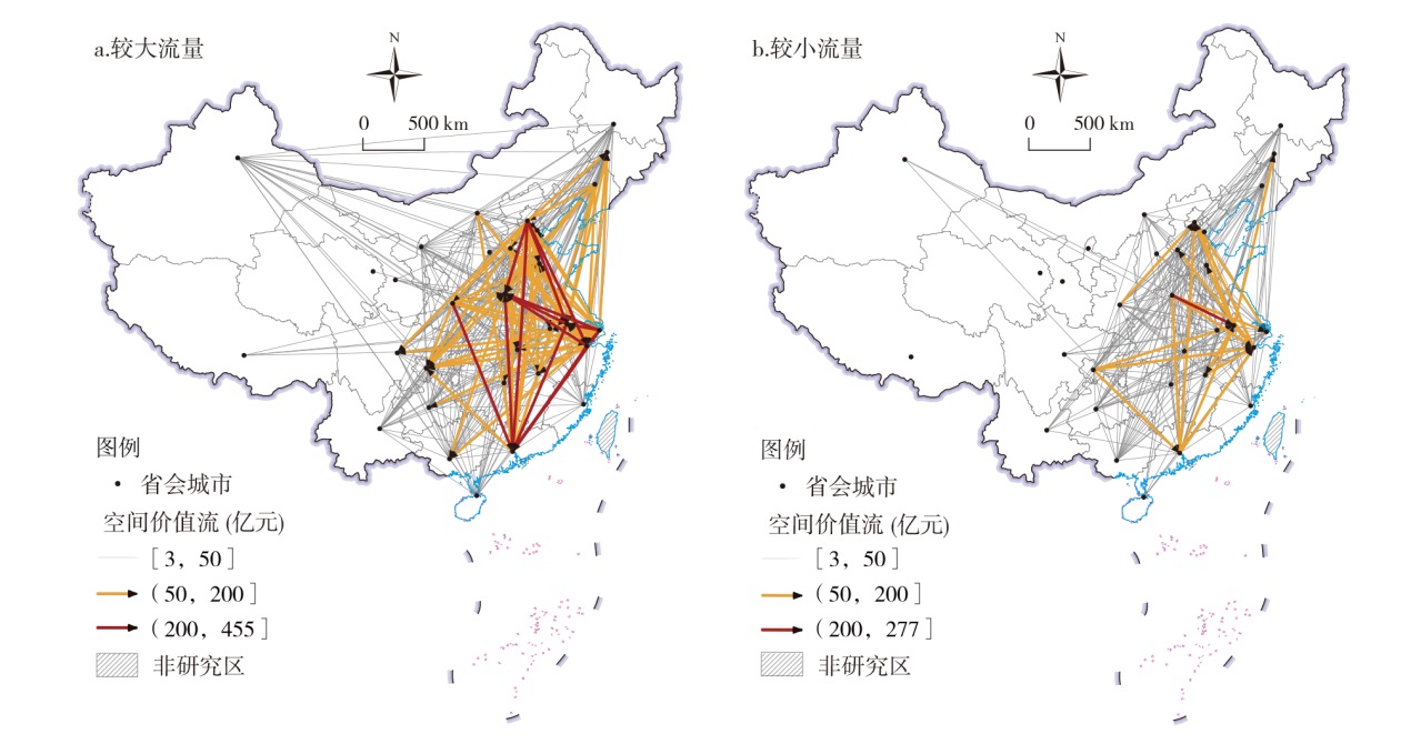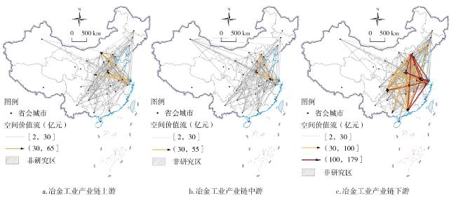 图3 2017年生产性服务业嵌入冶金工业产业链的空间价值流网络格局Fig.3 Network pattern of the spatial value flow of producer services industry embedding in metallurgical industry chain in 2017 |