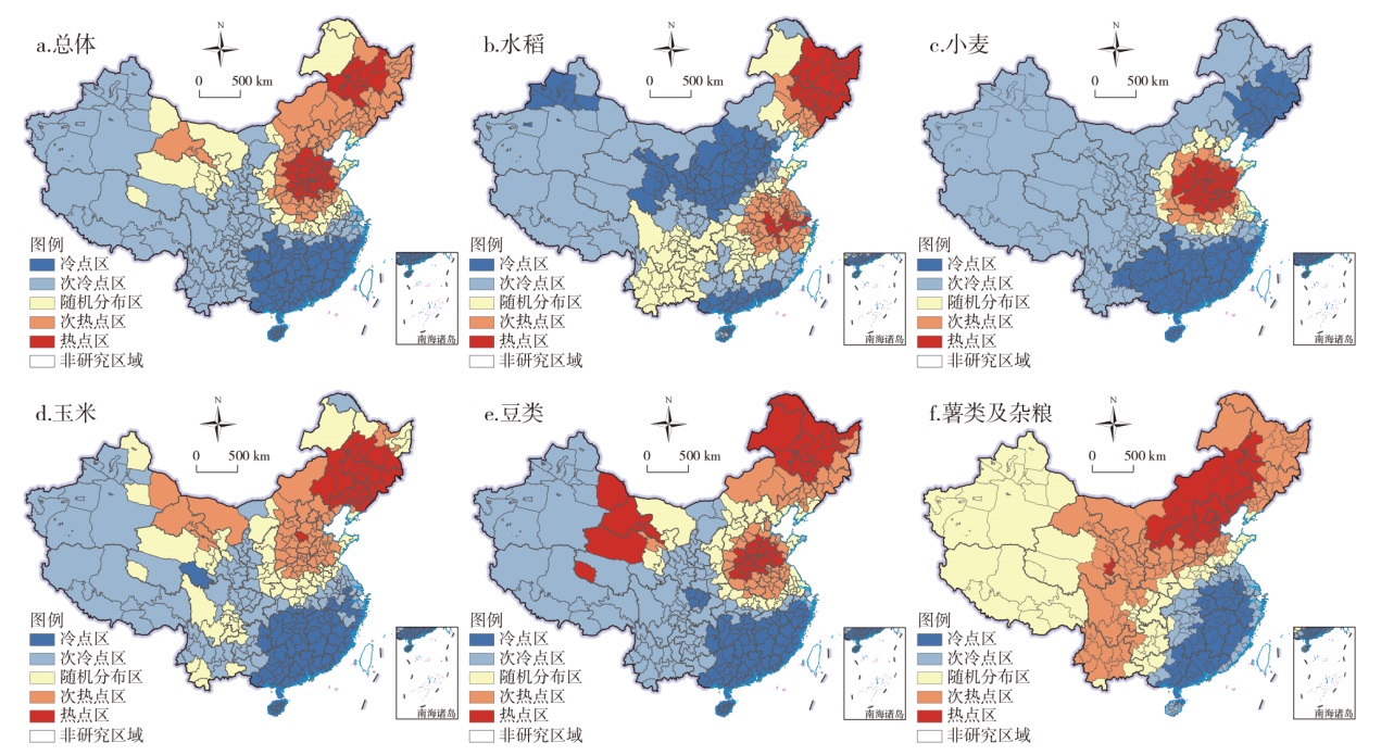 小麦 | 0.23 | -59.32 | 0.00 | 集聚 | 10.76 | 46.52 |