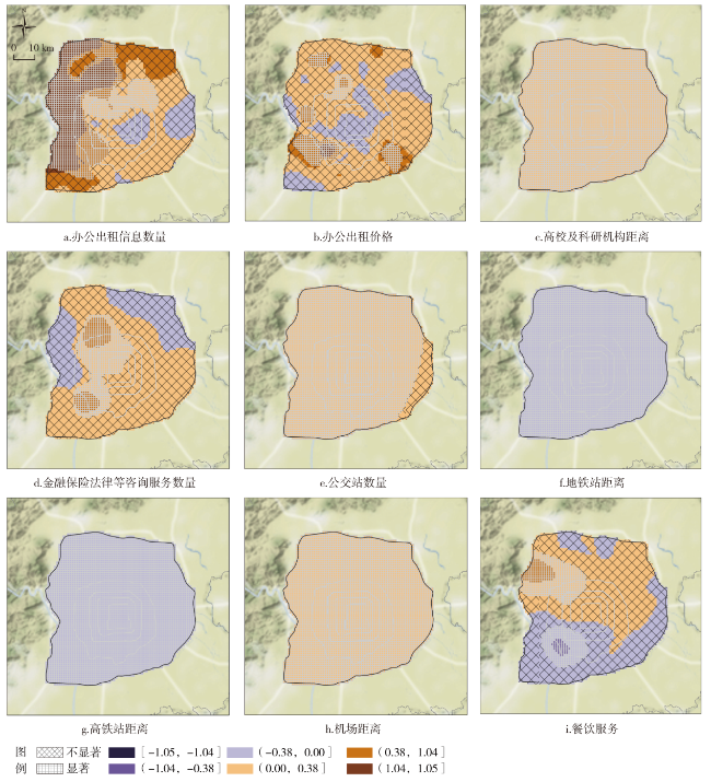 表6 不同类型高新技术企业空间分布影响因素的MGWR模型回归结果Tab.6 MGWR model regression results of factors affecting spatial distribution of different types of high-tech enterprises |