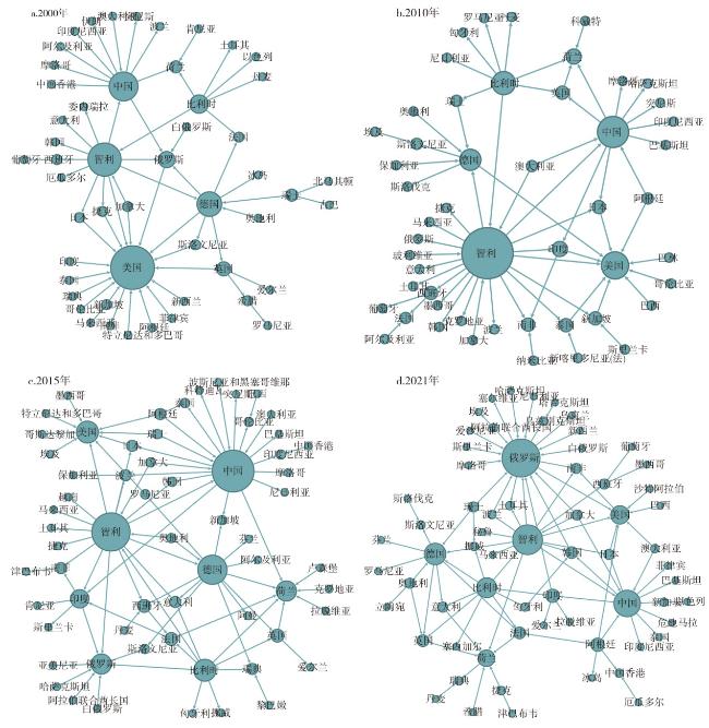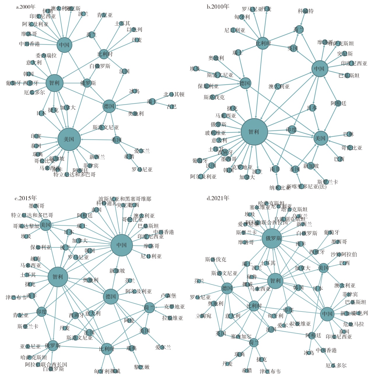 表1 全球锂资源贸易网络中心性测度结果Tab.1 Centrality indicators in the global lithium resource trade network |