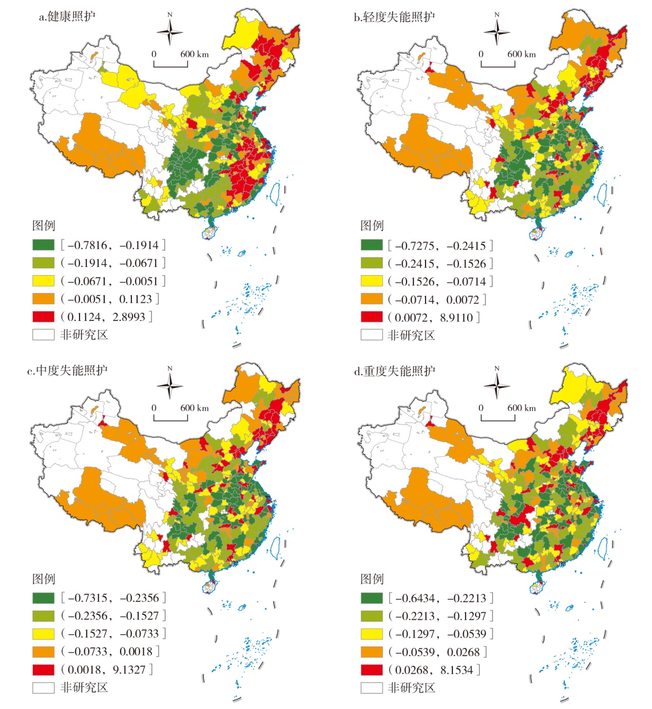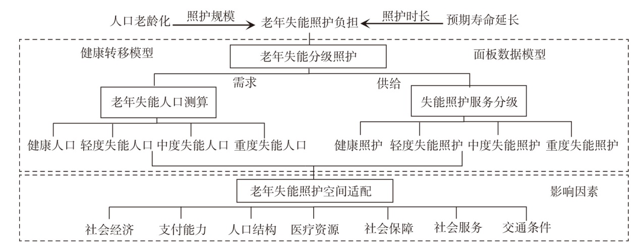 老年失能照护是人口负增长时代的巨大挑战。文章结合多学科研究方法,刻画了老年失能分级照护机构的空间格局及密度差异,并揭示了其供需适配性的形成机制。研究发现:①中国老年失能照护机构数量总体呈现以北京、上海、广州为高值中心的分布格局,且高值区随照护分级的提升而逐渐收缩。②老年失能照护机构密度在不同区位、等级和规模的城市类型中有所差异,东部城市、直辖市和超大城市在所有失能分级下的发展优势均十分突出。③中国老年失能照护机构供需适配水平的空间分化迹象明显,总体表现为“东部繁荣、西部发展、中部塌陷”,且随着照护分级的提高,适配区向东部地区与省会城市集中。④供需适配格局受多种因素的共同影响,社会经济、支付能力和人口结构为空间分异的主导因子,其中人口结构与社会服务、医疗资源与交通条件的因子交互解释力最强。⑤各因素的影响效力存在区域差异,未来中国老年失能照护建设应充分考虑地区失能人口规模及结构特点,提供差别化的资源增补以弥合发展差异、实现社会公平。