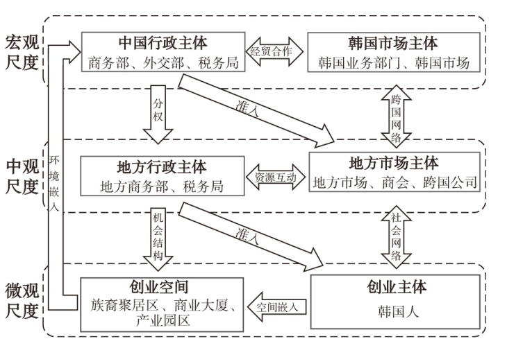 Since China's reform and opening-up,Dongguan City has attracted a large number of foreign-funded enterprises, resulting in a unique entrepreneurial space formed by the accompanying Korean immigrants. Based on in-depth interview and participatory observation,this paper explores the characteristics and formation mechanisms of Korean entrepreneurial space in Dongguan City using the theory of mixed embeddedness. It's found that:1) In terms of the characteristics of entrepreneurial space, Korean entrepreneurial space shows a trend of spatial agglomeration centered in the urban area of Dongguan City and diffusion to the suburbs of Dongguan City,forming a "large-scale dispersion" feature. 2) The formation of Korean entrepreneurial space in Dongguan City is affected by multi-scale factors and interactions between subjects, and is highly dependent on the social network of ethnic economy. However,entrepreneurial space is not static. With the continuous evolution of geopolitical relations, policies and market environment,Koreans in Dongguan will flexibly adjust their business strategies to adapt to changes in the external environment. 3) Koreans actively participate in local economic and political construction in the process of entrepreneurial practice, which makes the entrepreneurial network of immigrants continue to expand to buffer the risks brought by geopolitics.