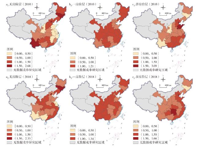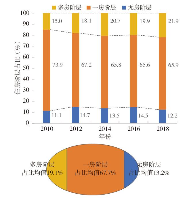 图1 2010—2018年中国城市住房阶层结构的演变Fig.1 Dynamic changes of urban housing class in China from 2010 to 2018 |