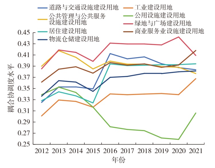 建设用地的配置牵引着人力、资本和产业的时空聚集,对于培塑城市经济韧性和推进城市经济高质量发展至关重要。文章基于2012—2021年中国254个城市的面板数据,利用耦合协调度模型与敏感性指标法,系统分析了建设用地配置总量及其结构与城市经济韧性的时空耦合协调关系。研究发现:①中国建设用地配置水平和城市经济韧性呈现上升趋势,空间上表现出“东高西低”的分布特征;②不同建设用地类型的耦合协调度存在显著分化,其中商业、物流仓储、居住以及绿地与广场用地与城市经济韧性的耦合协调度持续提升,而公共服务和公用设施用地与之耦合协调度则呈下降趋势;③东部地区的长三角和珠三角地区呈现出高耦合协调度集聚效应,中西部地区以重庆为核心形成辐射带动格局,而东北地区则面临低位徘徊的挑战。基于研究结论,提出优化区域用地配置、提升土地配置效率与精准性、加强城市更新与基础设施建设等建议,以促进中国区域经济的高质量发展和城市经济韧性的提升。