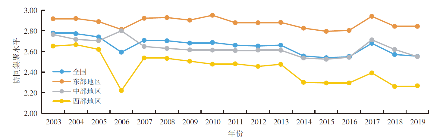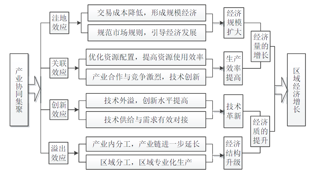 文章以存在密切产业关联的制造业与生产性服务业为例,研究产业协同集聚对生产效率以及创新能力的提升作用,进而实现区域经济“量”与“质”的增长。首先,利用产业协同集聚指数测度2003—2019年中国大陆30个省份制造业与生产性服务业产业协同集聚水平。其次,以省级面板数据构建空间计量模型,从生产效率和技术创新两个角度,探究产业协同集聚对区域经济增长的重要作用。结果表明,产业协同集聚能够提高生产效率、促进创新进步和经济增长,且这种促进作用具有显著的空间溢出效应,对实现区域经济“量”与“质”的增长具有重要意义。因此,各地区要强化一体化发展意识,突破区域界限,加强区域合作,在发挥地区优势的基础上实现共同发展。