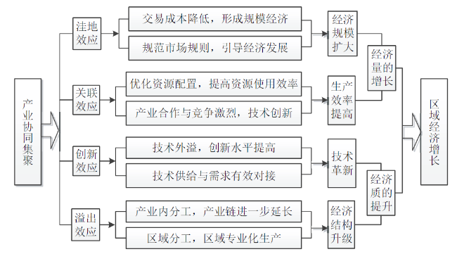 Taking manufacturing and producer services,which are closely related to industries,as an example,this paper studies the important role of industrial co-agglomeration in improving production efficiency and innovation ability,so as to realize the regional economy growth of "quantity" and "quality". Firstly,based on the industrial synergy agglomeration index,it measures the level of industrial co-agglomeration between manufacturing and producer services in 30 provinces of China from 2003 to 2016. Secondly,it explores the important role of industrial collaborative agglomeration on regional economic growth from the perspective of production efficiency and technological innovation by the means of the spatial measurement model. The results show: the industrial co-agglomeration can improve production efficiency,and promote innovation and economic growth,which has a significant space spillover effect and is of great significance to realize the regional economy growth of "quantity" and "quality". Moreover,the industrial co-agglomeration has a significant spatial spillover effect and has a positive guiding significance to the cross-regional cooperation of the economic development. Therefore,in the course of the current economic development,the regions should strengthen the integrated development consciousness,break through the regional boundary,strengthen the regional cooperation,and realize the common development on the basis of the regional advantages.