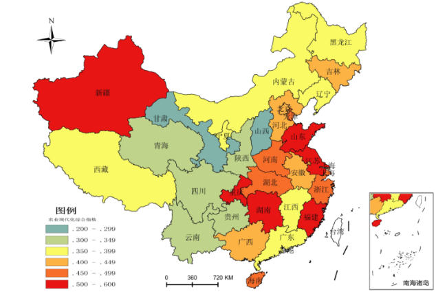 图3 农业现代化与乡村文化发展协调度分布图Fig.3 Distribution map of coordination degree of agricultural modernization and rural cultural development |