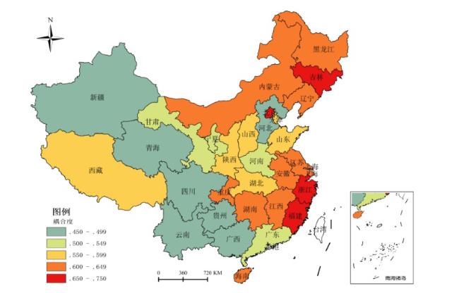 内蒙古 | 0.992 | 0.400 | 0.630 | 海南 | 0.905 | 0.398 | 0.600 |