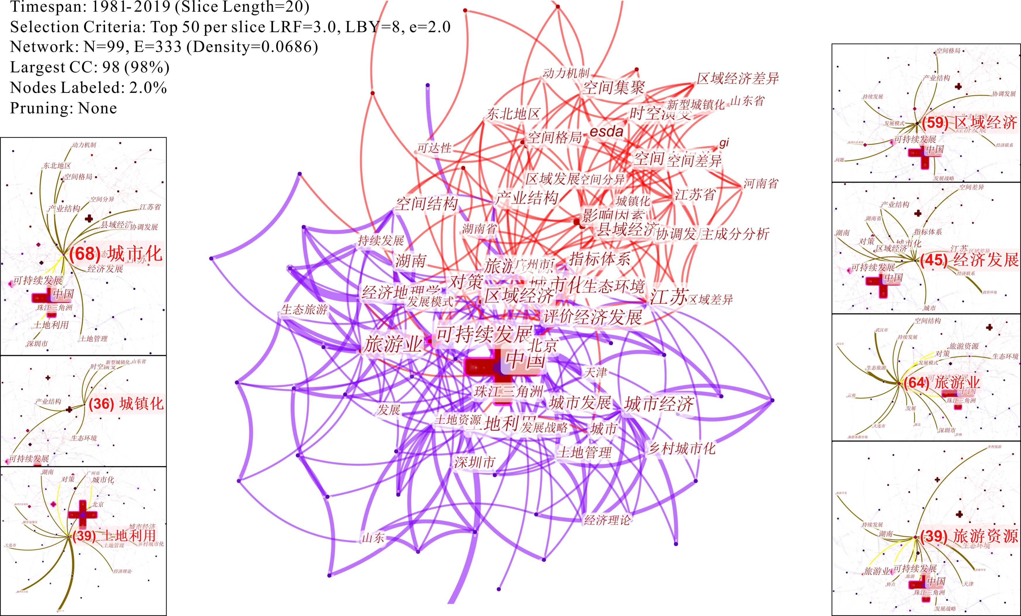 Through using knowledge mapping and social network analysis methods,this paper analyzes the characteristics and change of knowledge spillover since the founding of Economic Geography (founded by The Geographical Society of China) in 1981-2019 based on the citation relationship. The comprehensive and interdisciplinary characteristics of economic geography research can be fully explained in the characteristics and change of knowledge spillover in the Economic Geography. The function and change of knowledge spillover is not only reflected in promoting the formation of author cooperation network and deepening of institutional cooperation,but also in promoting the research of urbanization,regional economic development,regional tourism development and other research fields. The characteristics and change of knowledge spillover are further clarified in the discussion of its subject composition,author's contribution,institutional strength and leading research edge. Specifically,the knowledge spillover effect of urbanization research has gradually turned to the themes of the new type of urbanization,urban network,ecological environment,coordinated development from urbanization,land use,ecological environment and other aspects; the knowledge spillover effect of regional economic development research has experienced the theme change from economic connection to industrial cluster,and then to spatial interaction relationship; and the role of knowledge spillover in the study of regional tourism development is gradually turning to the themes of rural tourism,tourism economy and coordinated development from tourism resources,tourism industry,eco-tourism and other aspects. Guided by the national development strategy and policy,promoting the research and development of domestic economic geography is the core content and concentrated reflection of knowledge spillover in the Economic Geography.