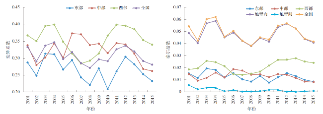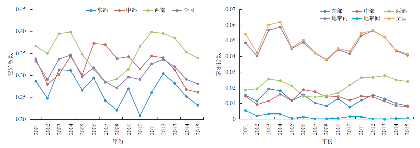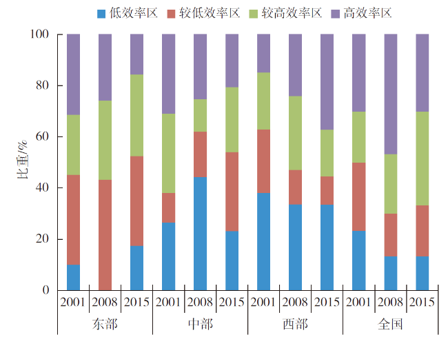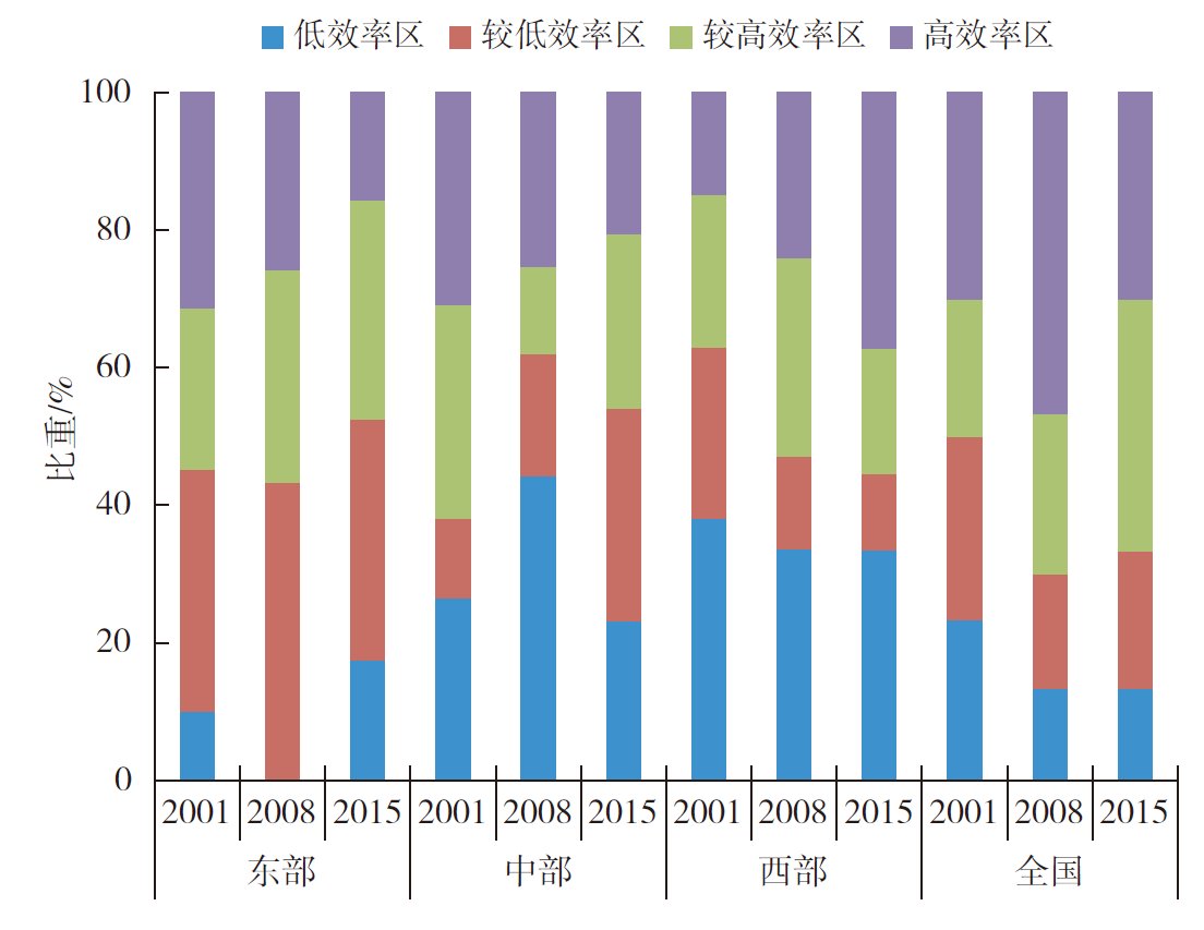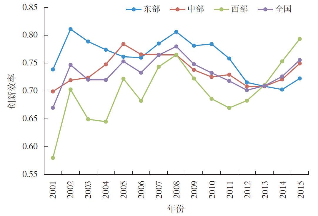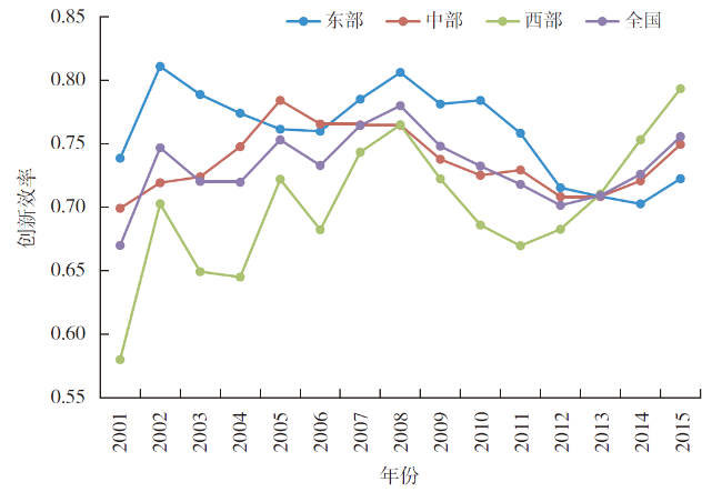 提高区域创新效率,缩小区域创新差距是推动中国经济转型和建设创新型国家的必经之路,探明区域创新效率的时空演变特征及其影响因素对制定区域创新政策、构建富有特色的区域创新模式具有重要作用。文章以中国30个省(直辖市、自治区)为研究单元,运用DEA方法、变异系数、泰尔指数等测算了中国2001—2015年的区域创新效率及区域差异,利用NICH指数和Hurst指数进一步分析各省份创新效率的未来发展趋势,并借助Tobit模型分析了创新环境对区域创新效率的影响。 结果发现:①中国创新效率总体呈上升趋势,2001—2015年呈“东—中—西”阶梯式递减,2013年后出现明显的交替节点;②中国创新效率存在明显的区域差异,但差异趋于收敛。其中,总体差异主要由地带内差异引起,且地带内差异呈“东—中—西”阶梯式递增,地带间差异仅占总体差异的1.96%;③创新效率的空间分布由分散趋于集中,其中,东部各省市的创新效率分布比较稳定,中西部地区均衡化趋势明显,创新效率“东—中—西”的分异格局逐步弱化;④未来,中国区域创新效率“西—中—东”递减式空间布局将得到延续和强化;⑤基础设施、市场环境、劳动者素质、金融市场和创业水平是影响区域创新效率时空变化的关键因素,但各因素对区域创新效率的影响强度和方向存在显著的空间异质性。