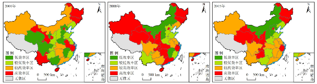 表1 2001—2015年中国区域创新效率结果Tab.1 The result of regional innovation efficiency in China in 2001-2015 |