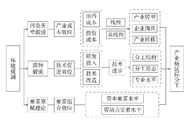 Based on the spatial correlation SDM model, this paper explores the spatial pattern of environmental regulation and its influence mechanism on the interregional division of labor in the industrial chain,and empirically analyzes local-neighborhood effect of environmental regulation on the chemical industry of the Yangtze River Economic Belt. The main conclusions are as follows: 1) From the perspective of spatial pattern,it shows the coupling characteristics of high environmental regulation and high division of labor in Yangtze River Delta. Conversely,it shows low environmental regulation and low division of labor in the upstream of the Yangtze River Economic Belt,such as Yunnan,Guizhou and Sichuan. 2) From the perspective of spatial correlation,strengthening the environmental regulation in the short term will lead to the interregional transfer of industrial chain,and the hypothesis of "pollution paradise" is correct,and the division of labor between local and neighboring areas has decrease tendency,but the decline rate in neighboring areas is lower than that in local areas. In the long run,the impact of environmental regulation presents an inverted "U" shape,with the critical value of 1.7850 on local effect and 3.3025 on neighborhood effect. In other words,when the intensity is 1.7850,the division of labor between local and adjacent areas will be improved. When the intensity is between 1.7850 and 3.3025,the division of labor between local and adjacent areas will be more favorable,but if it is higher than 3.3025,the division of labor between local and adjacent areas will be inhibited. At the same time,the strengthening of regulation can promote the technology in local and neighboring areas. Capital,labor and other factors affect the division level of labor. The suggestions are as follows: 1) Each region should formulate appropriate environmental regulations. 2) It should implement regional differentiated environmental policies and promote them in a coordinated manner. 3) It's necessary to establish a "leading-following" interregional division of labor promotion mechanism. 4) Increasing technological innovation and strictly introducing foreign investors are both effective ways. 5) The government should coordinate and measure the combination of elements and pay attention to the long-term development of the industry.
