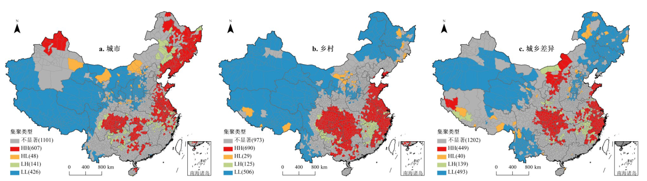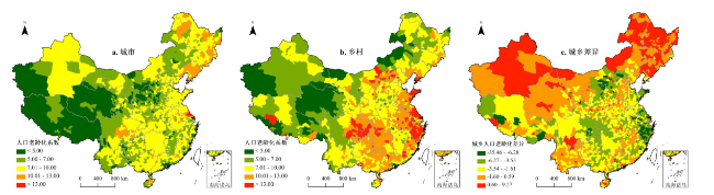 以人口普查数据为支撑,刻画中国城乡人口老龄化时序演变特征,利用探索性空间数据分析技术研究县域城乡老年人口空间差异与关联性,并结合空间回归模型对差异背后的机制进行解析。主要结论为:①城乡老年人口绝对量总体呈增长态势,不考虑政策因素带来统计口径差异的影响,乡村老年人口始终高于城市,但增速较缓。②然而,乡村较城市率先进入老龄化社会且速度快于城市,老龄化“城乡倒置”呈现“缩小—再扩大”的阶段性特征。③城市老龄化以东北三省、苏北及川渝为甚,乡村老龄化呈“三足鼎立”之势,以乡城人口流迁主导的城乡差异格局开始凸显,具体围绕长江三角洲、川渝、呼包鄂榆城市群郊县分布。城乡老龄化空间集聚特征显著,乡村集聚性大于城市,区域不均衡较城市更明显。④新时期,人口迁移构成城乡人口老龄化区域差异的关键因素,社会文化因素、人口因素对城乡人口老龄化影响各异,经济因素影响不显著。文章旨在为新型城镇化和乡村振兴战略背景下的城乡人口统筹发展指明方向,为城乡后社会主义老龄化理论探索提供依据。