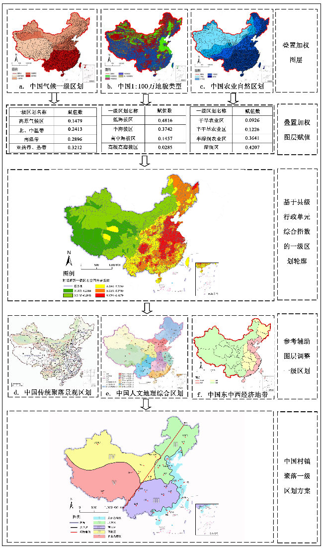 图7 中国村镇聚落二级区划方案划定流程Fig.7 The second-level zoning of village and town settlements in China |