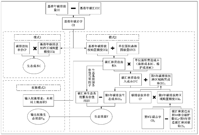 模式2 | 生态环境效益(V) | (7) | FESV为碳汇林生态系统服务价值;ECN为第N年碳排放生态成本 |