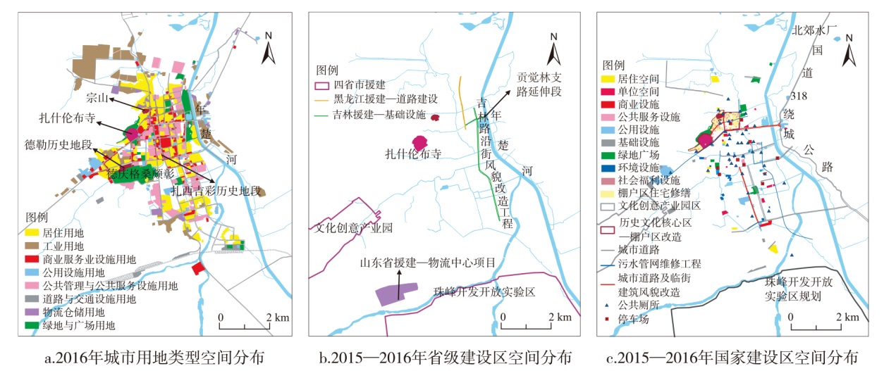 对日喀则市城市发展实施反梯度、跨越式发展战略是国家力量的核心体现。基于尺度理论,运用质性、数理统计、空间分析法,研究投资对城市发展、空间演化的效应、特征及治理模式。结果表明:①1995年后城市空间开始快速扩张。2005—2014年,城市空间扩展的变化幅度和速度最大。1959—2016年,城市空间结构逐渐优化和功能逐渐完善,且居住、公共管理和公共服务职能最终占据了主导地位。2015—2016年,城市发展转向内部更新及绿色建设阶段。②国家、援藏投资对促进经济发展和建成区扩张具有合力作用,但国家投资对城市发展和空间演化的效应大于援藏投资对应的效应。③中央、中东部发达省市、西藏地市不同等级政府之间进行尺度生产组成两种治理模式:中央政府—东部发达省市—西藏地方政府垂直治理模式,中央政府—中央企业/东部发达省市—西藏地方政府组成的协调治理模式。④计划经济时期,实施国家—地方两级尺度治理模式,建设居住空间、公共管理和服务设施、基础设施等构筑物,促进了城市空间扩展和结构变化。⑤改革开放以来,国家投资、对口援建共同作用来推动日喀则城市建设,形成国家—发达省市—地方三级尺度模式,且对口援建对城市空间扩展是一种强化过程。