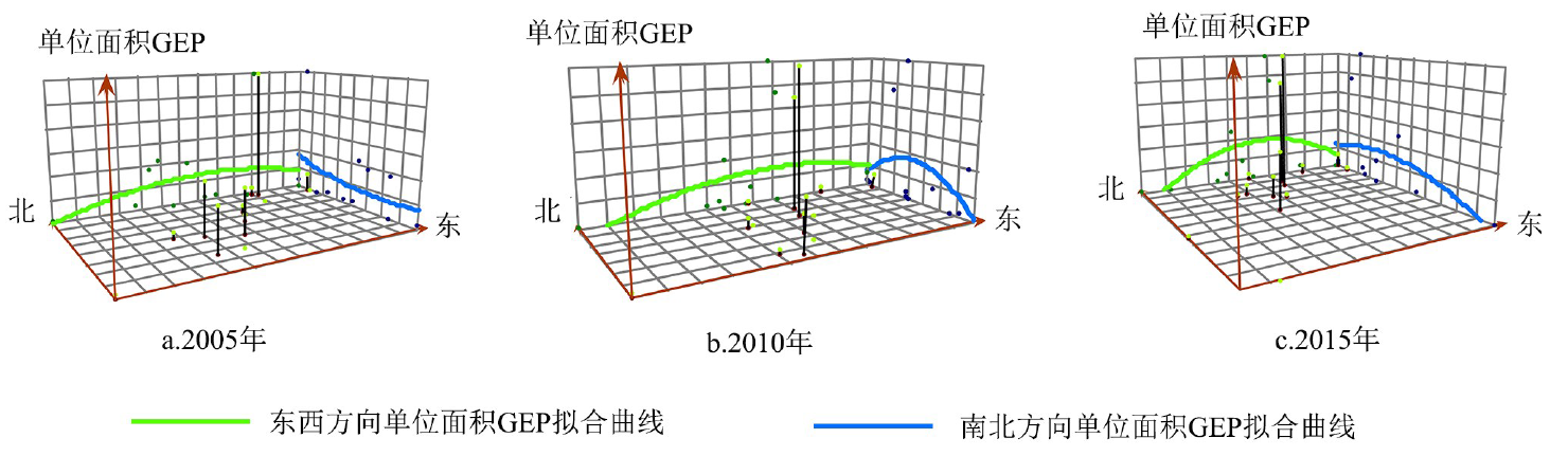 表6 大连市2005、2010和2015年GEP与经济发展综合指数及耦合协调测算结果Tab.6 Comprehensive index and coupling coordination level of Dalian’s GEP and economy in 2005,2010 and 2015 |