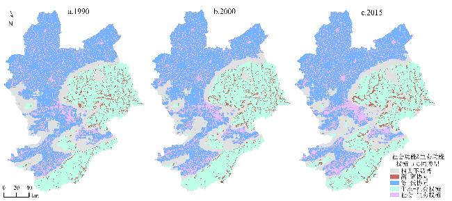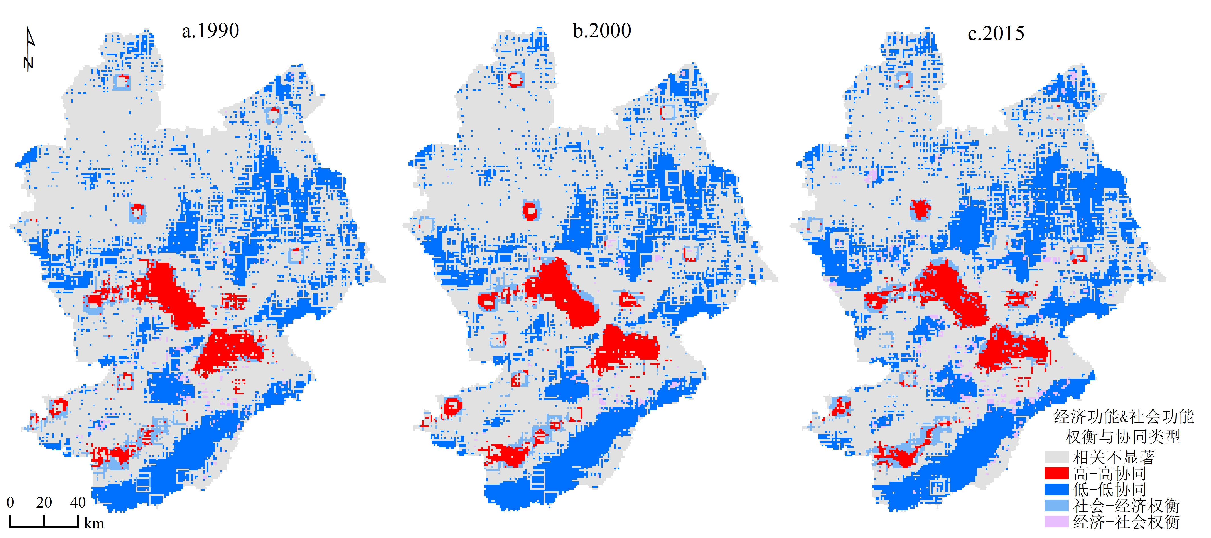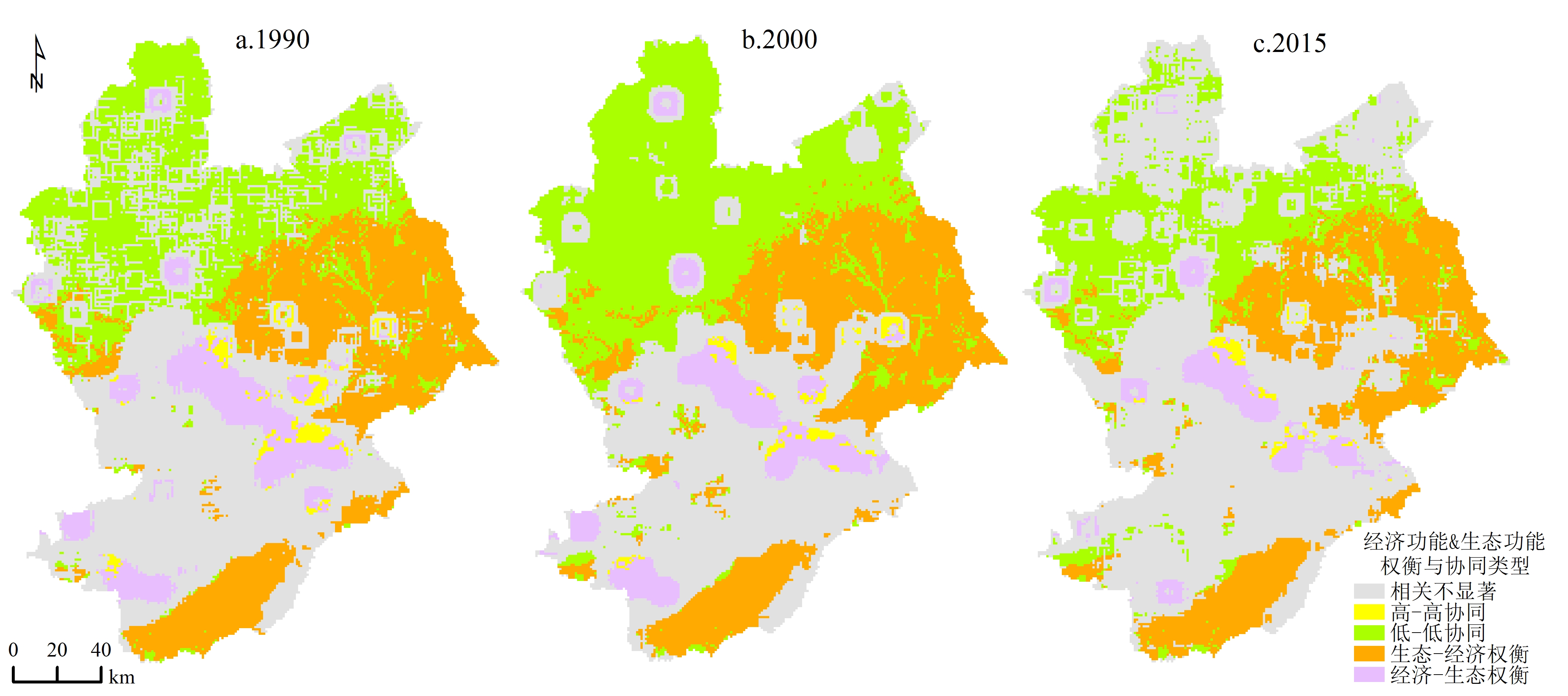 土地利用功能之间存在复杂的权衡与协同关系,协调好生态脆弱贫困区土地利用功能冲突问题是服务生态文明建设、国土空间优化开发的重要价值体现。文章以张家口市为研究区域,从经济、社会和生态三个维度构建土地利用功能分类与指标体系,融合多源数据,采用综合评价法、双变量空间自相关法、面积占优法等测度1990—2015年土地利用功能及其权衡/协同关系演变特征。基于此,划分土地利用功能区,提出相应的优化路径。结果表明,土地利用经济与社会功能以协同型关系为主,多发生在中部洋河谷地和东部山区。生态与经济功能的权衡型与协同型关系交替居于主导地位,生态与社会功能由协同型关系转为权衡型关系为主导。生态与经济功能及与社会功能权衡型关系主要分布在中部洋河谷地和东部山区,协同型关系多发生在坝上高原。将张家口市国土空间划分为生态保护区应以保护生态为主;城镇发展核心区应以优化产业布局和城镇体系为主;城乡优化发展区应以发展都市农业、建设特色小城镇为主;农业生产区应以发展生态特色农业为主。