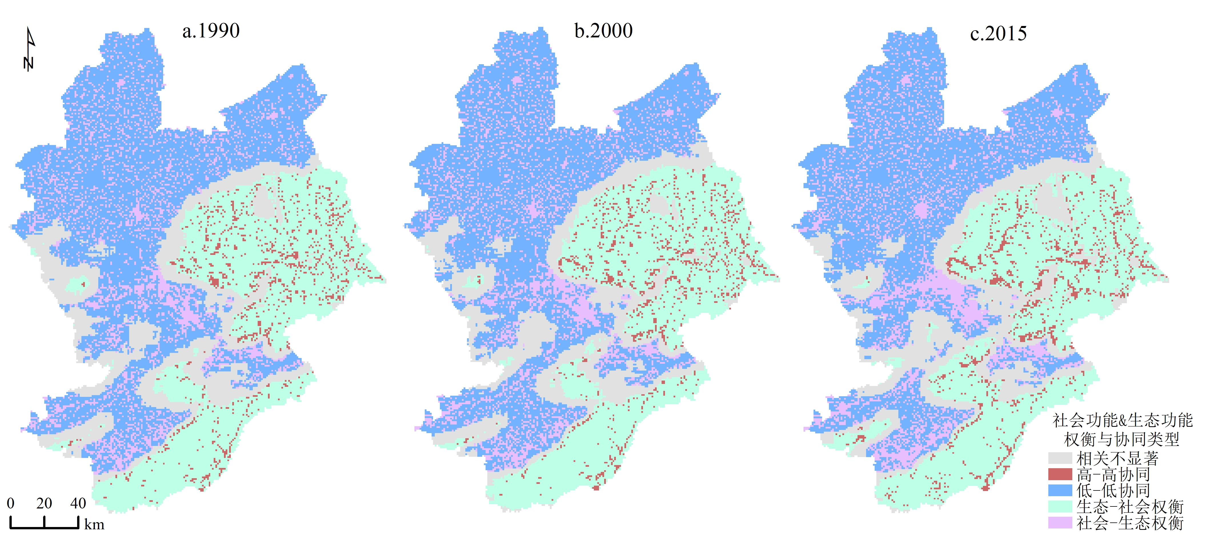 低 | / | / | 社会—经济权衡型 | 低—低协同型 | 生态—经济权衡型 | 低—低协同型 | |