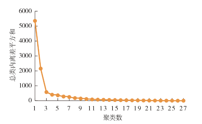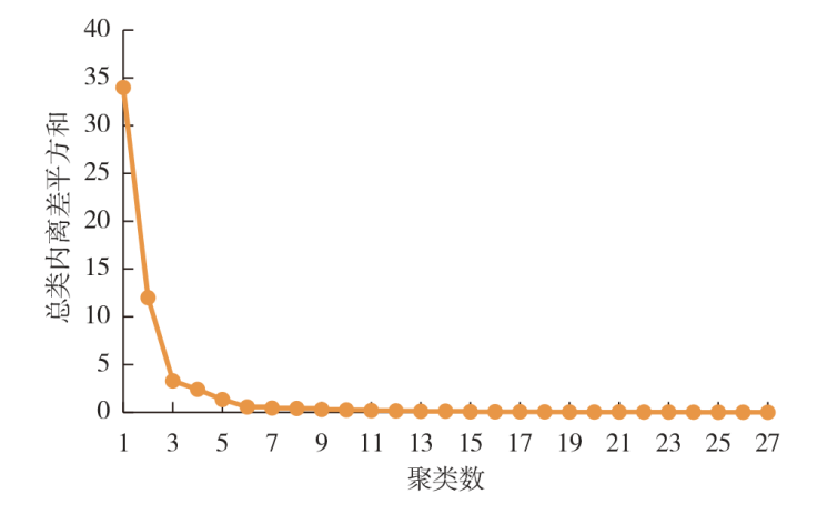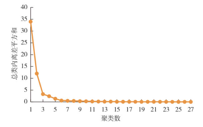 图5 多指标聚类过程中总类内离差平方和的变化Fig.5 The change of total within-cluster dispersion in the process of clustering to multivariate |