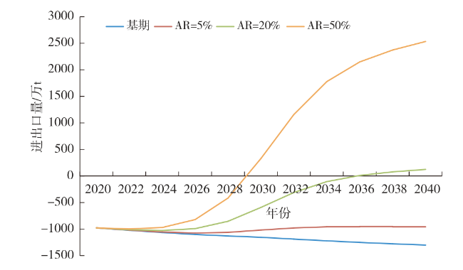 表4 2020—2040年11国水稻净出口占产量比例的基线预测结果(单位:%)Tab.4 Change in rice net trade over production in 11 countries from 2020 to 2040(unit:%) |
