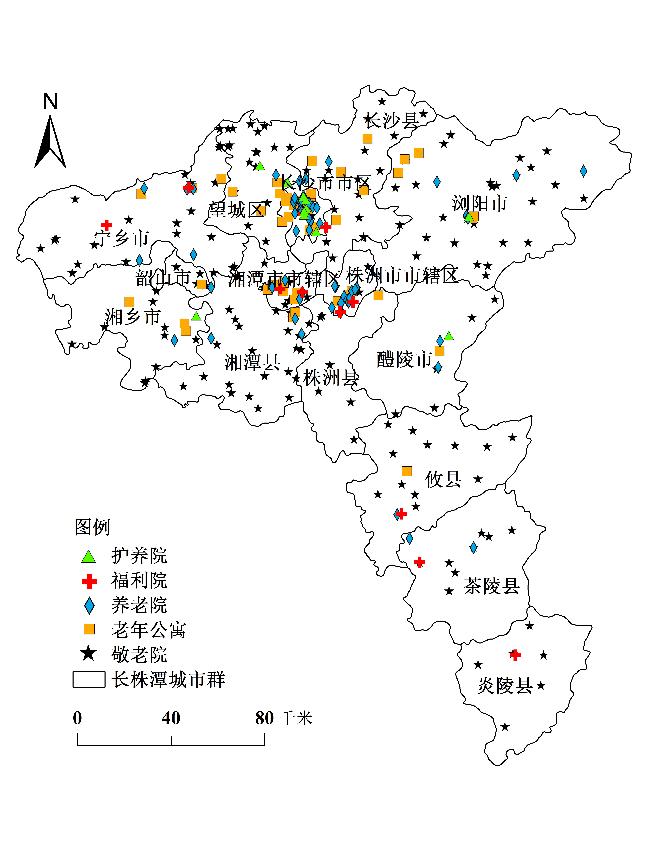 表1 长株潭城市群养老设施数量Tab.1 The number of old-age care institutions in Chang-Zhu-Tan urban agglomeration |