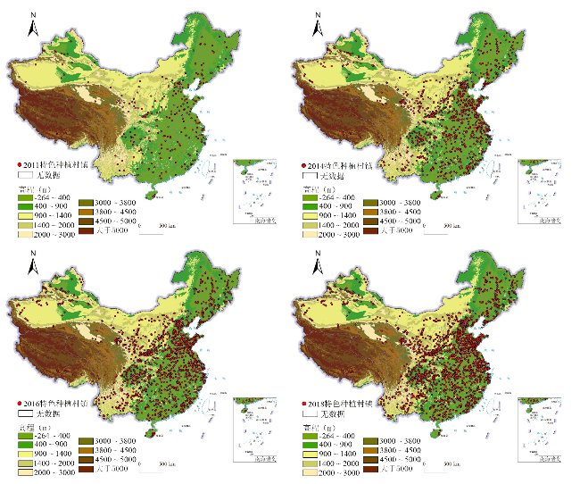 表2 各年份特色种植村镇最近邻指数分析结果Tab.2 Analysis results of villages and towns with specialized planting based on the nearest-neighbor index |