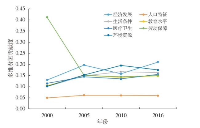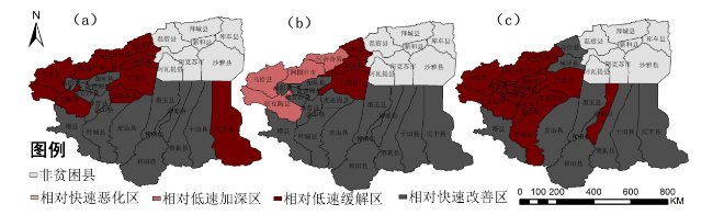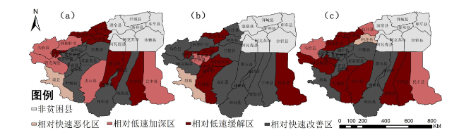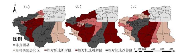文章针对南疆四地州26个贫困县构建包含3个向度7个维度的多维贫困度量模型,对每个贫困县的多维贫困度、多维贫困变化度、多维贫困贡献度进行测算分析;利用空间分析与K-均值聚类量化方法,分析2000—2016年贫困县多维综合贫困度的时空演变及其贫困维度变迁特征,将贫困县聚合成4种类型,探讨导致时空格局演变的驱动机制。结果表明:南疆四地州多维贫困程度时空演变呈现相对快速改善区、相对低速缓解区、相对低速加深区、相对快速恶化区4种变化等级;贫困县的贫困缓解速度大体上呈明显的由快速到低速再快速的特点;其中喀什地区中部以及和田地区中部的经济消贫作用显著;社会消贫发展整体向快速改善偏移;自然资源利用对贫困的缓解能力波动变化态势显著;贫困县多维综合贫困度空间自相关集聚特征显著,随时间演变具有集群分布向随机离散分布格局转变的趋势;2006年以后经济发展和环境资源维度成为主要驱动因素。