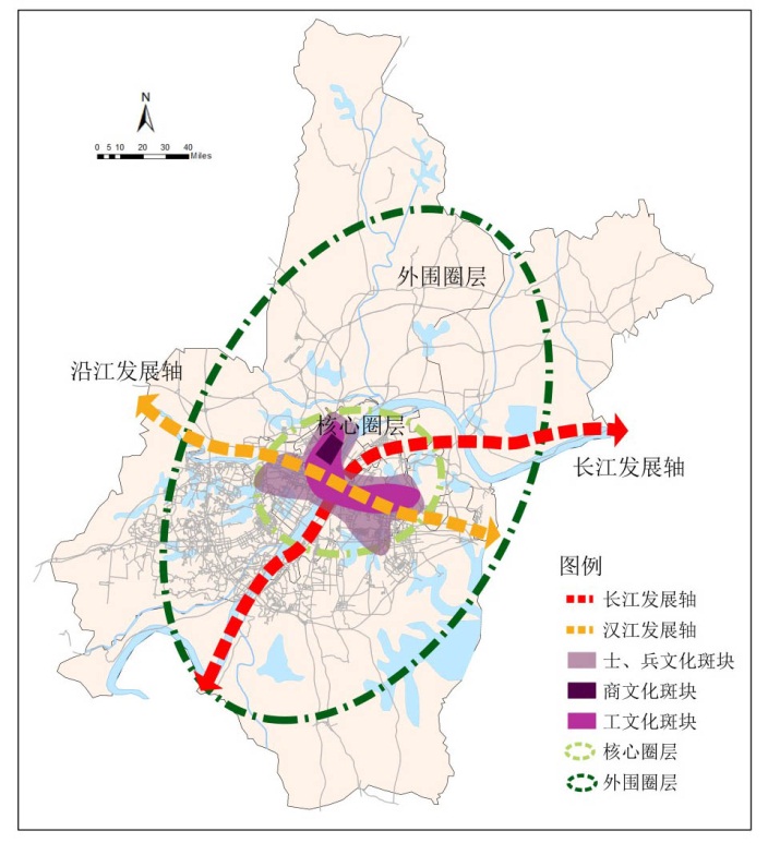 从社会记忆的维度,对武汉市283处文物保护单位构建“士农工商兵”的分类体系,并梳理其时间演变和空间结构特征,发现:①时间上武汉市文物保护单位的文化类型表现出由单一走向丰富的基本特性,可基本分为“远古—六朝”、“隋唐至今”的两大阶段,总体表现为“生存文化—手工文化—学士文化—本土商贸文化—机械文化—军事纪念文化”的过渡特征。②空间上呈现出从分散到集中,由外围城区向中心城区聚集的特征;总体形成“两轴—四斑—两圈层”的空间分布体系。这种社会记忆的演化特征体现了占社会主导地位的意识形态和文化特征的变化,以及社会生产力的进步。这说明社会记忆的演化,受到社会群体的社会生产方式和生产关系的直接影响,主流生产力决定社会记忆的构建。