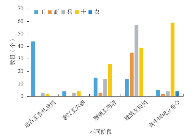 不同阶段 | 士 | 农 | 工 | 商 | 兵 | 数量 总计 | ||||||||||||||