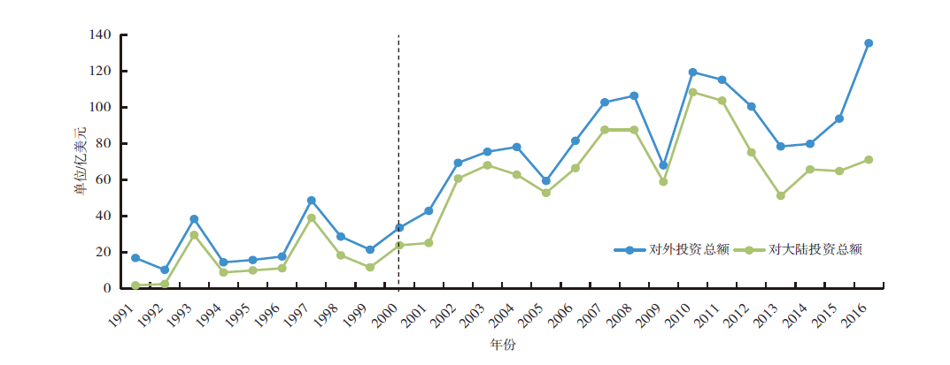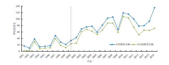 1991年以来两岸关系背景下台湾制造业对外直接投资的时空格局演化