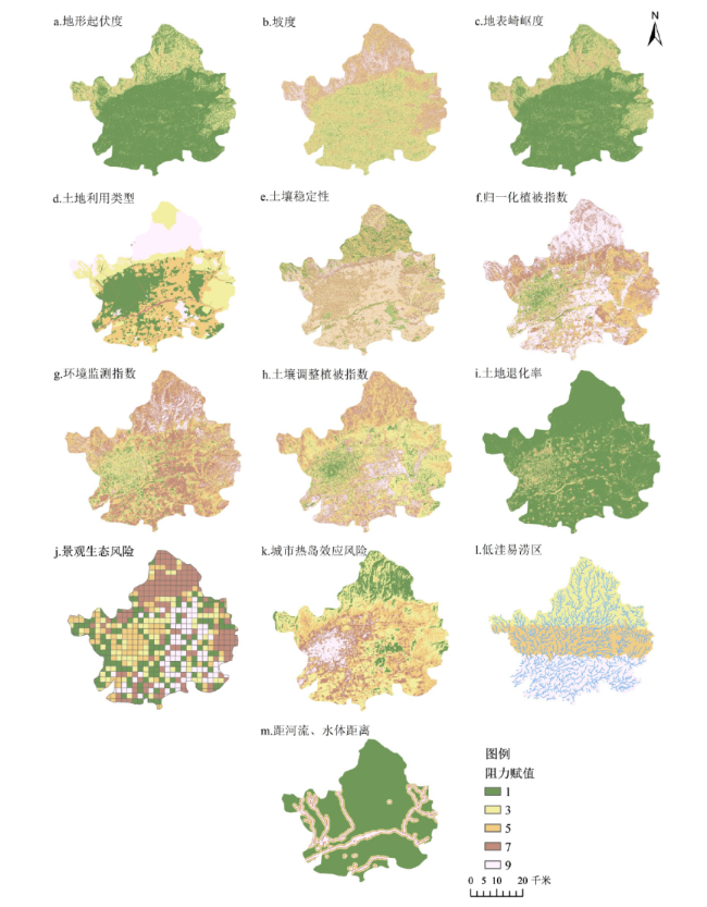 h.土壤调整植被指数(MSAVI)(0.4) | 低(1);较低(3);中(5);较高(7);高(9) | |