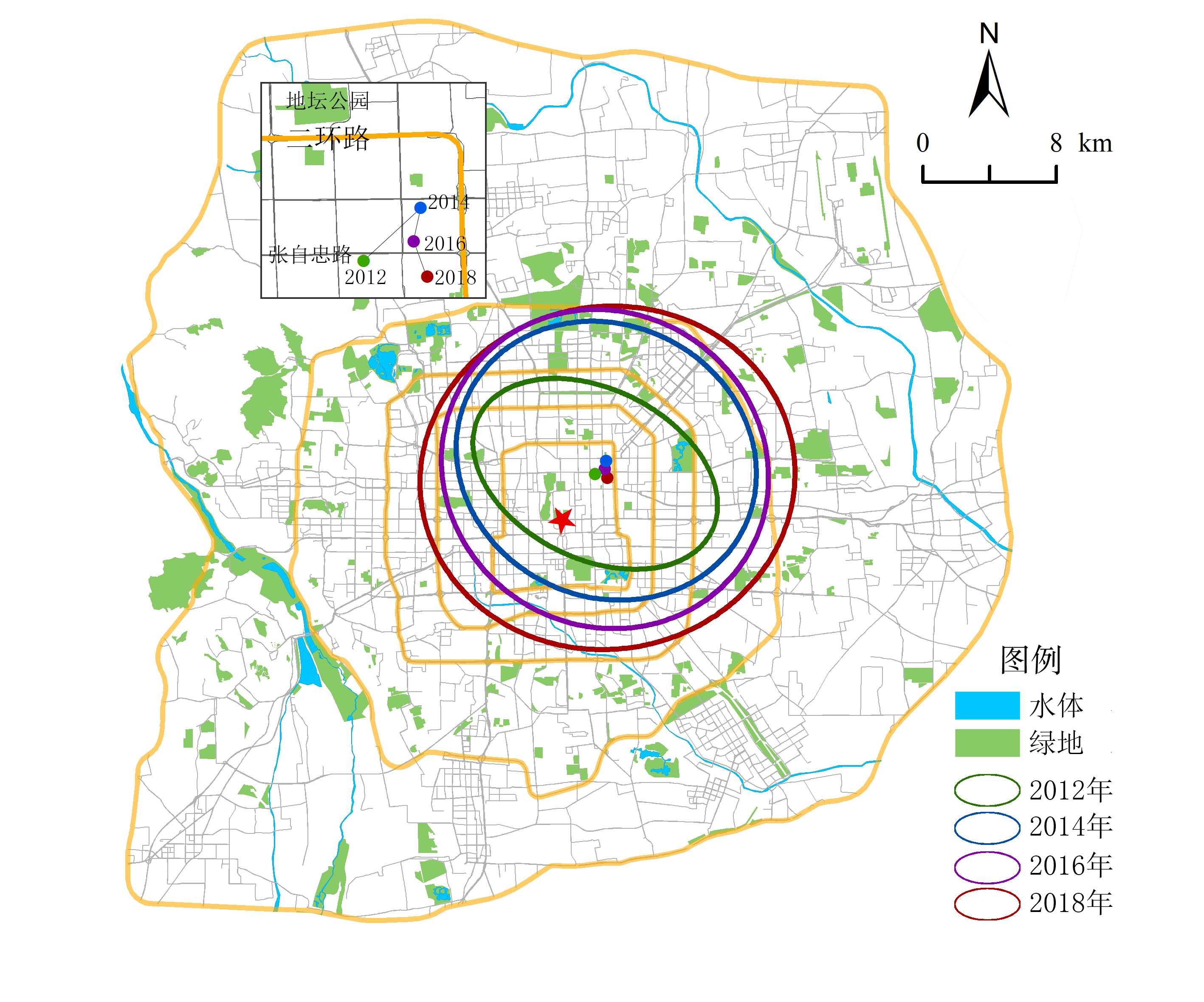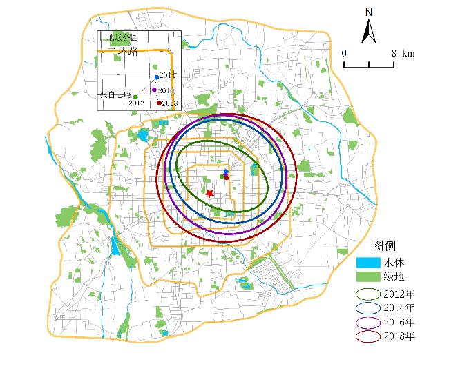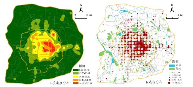 X4 | 距市中心距离 | km | 欧式距离计算 | / | 以天安门为中心到格网中心的欧式距离 | ArcGIS10.2 软件计算生成 |