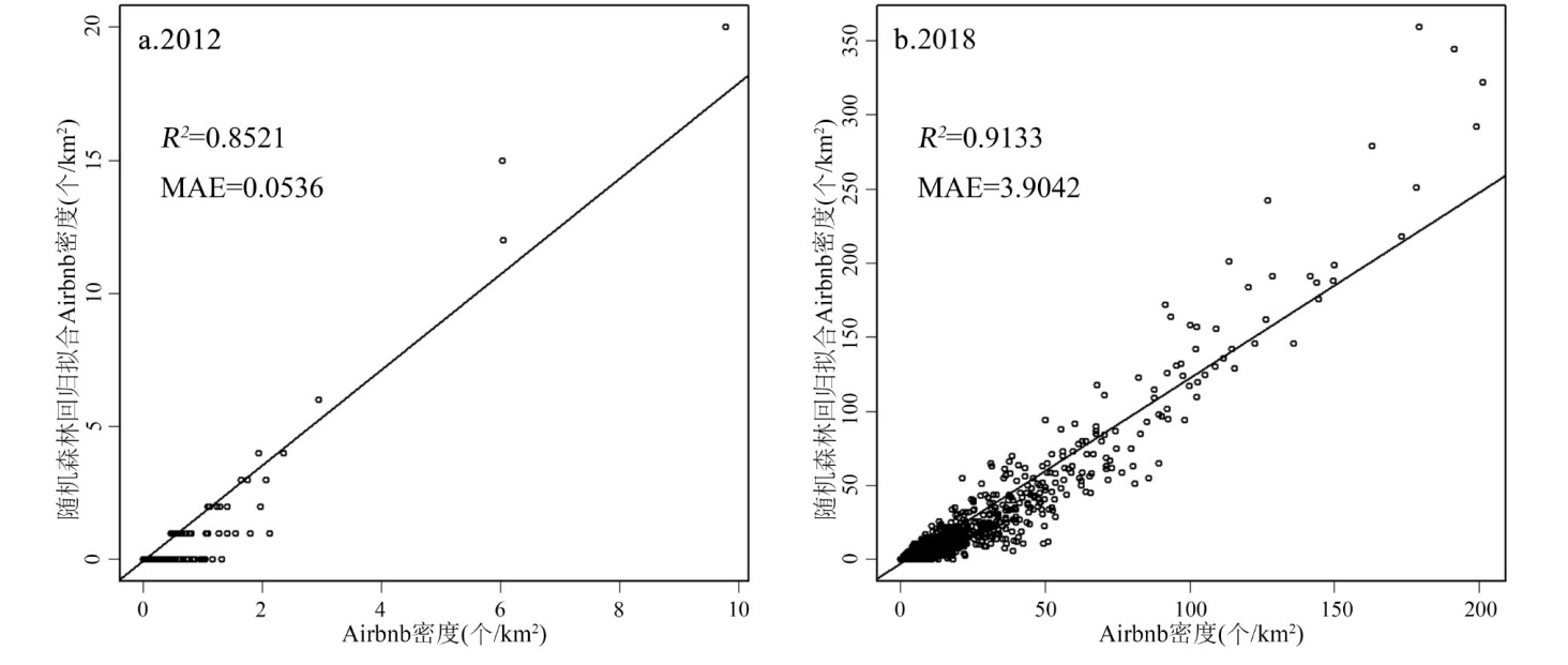 Taking Beijing inside the 6th ring road area as the research object and based on the relevant B&B(Bed and breakfast) data from the Airbnb website,this paper explores the characteristics of spatio-temporal differentiation,influencing factors and development trends of B&B by the means of standard deviation ellipse,kernel density,random forest and other analysis methods. The results show that: 1) From 2012 to 2018,the gravity center of distribution of B&B in Beijing moved from the northeast to the south. B&B mainly distributed in the southeast and the northwest in the early period,and showed even distribution in the later period. 2) From 2012 to 2018,it showed a fluctuating characteristic that is in the following order: weak agglomeration,strong agglomeration,strong agglomeration and stabilized agglomeration. 3) The distribution of B&B showed a dual-core structure in the early stage,which took Dongcheng District and Xicheng District as dual cores. In the later period,it showed a multi-center development trend,expanding to Changping District,Fengtai District and other peripheral areas. 4) The random forest model has a high fitting accuracy and can better explain the influence mechanism of the spatial differentiation of B&B. Population density, the number of people in higher education,the distance from the city center,bus stations and tourist attractions are the main factors that affect the spatial differentiation of B&B. Factors that have nonlinear and complex effects on the distribution of B&B. 5) According to the results of the Beijing B&B predictions,relevant departments can manage and regulate the distribution of B&B in a targeted manner to promote the high-quality development of Beijing's B&B industry.