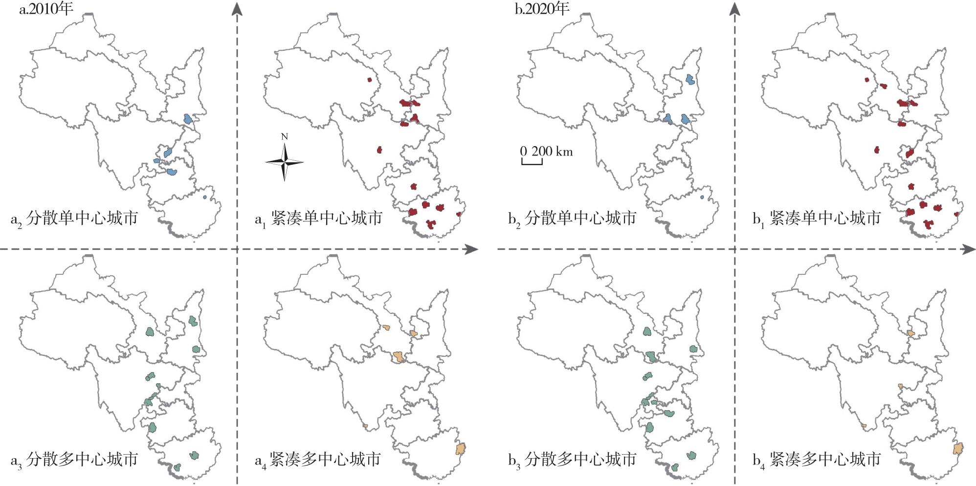 表2 2010—2020年四类空间结构城市的碳排放增量Tab.2 Carbon emission increment from four types of urban spatial structure in 2010 and 2020 |