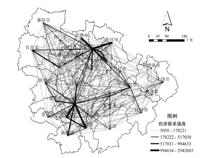 劳昕, 沈体雁, 杨洋, 等. 长江中游城市群经济联系测度研究——基于引力模型的社会网络分析[J]. 城市发展研究, 2016, 23(7):91-98.