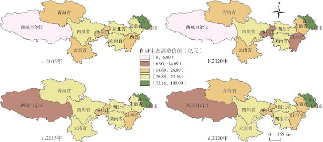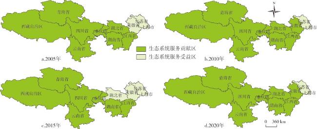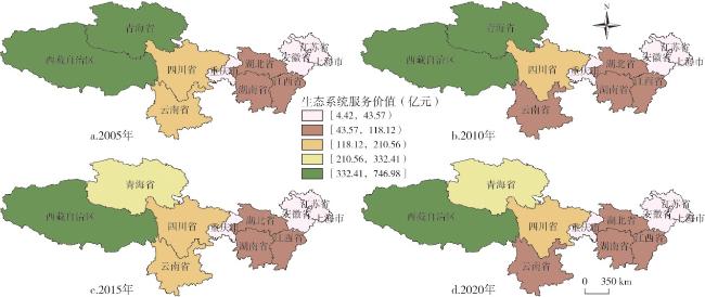 表1 2005—2020年长江干流生态系统服务价值(亿元)Tab.1 Ecosystem service value in the Yangtze River mainstream from 2005 to 2020 (100 million CNY) |