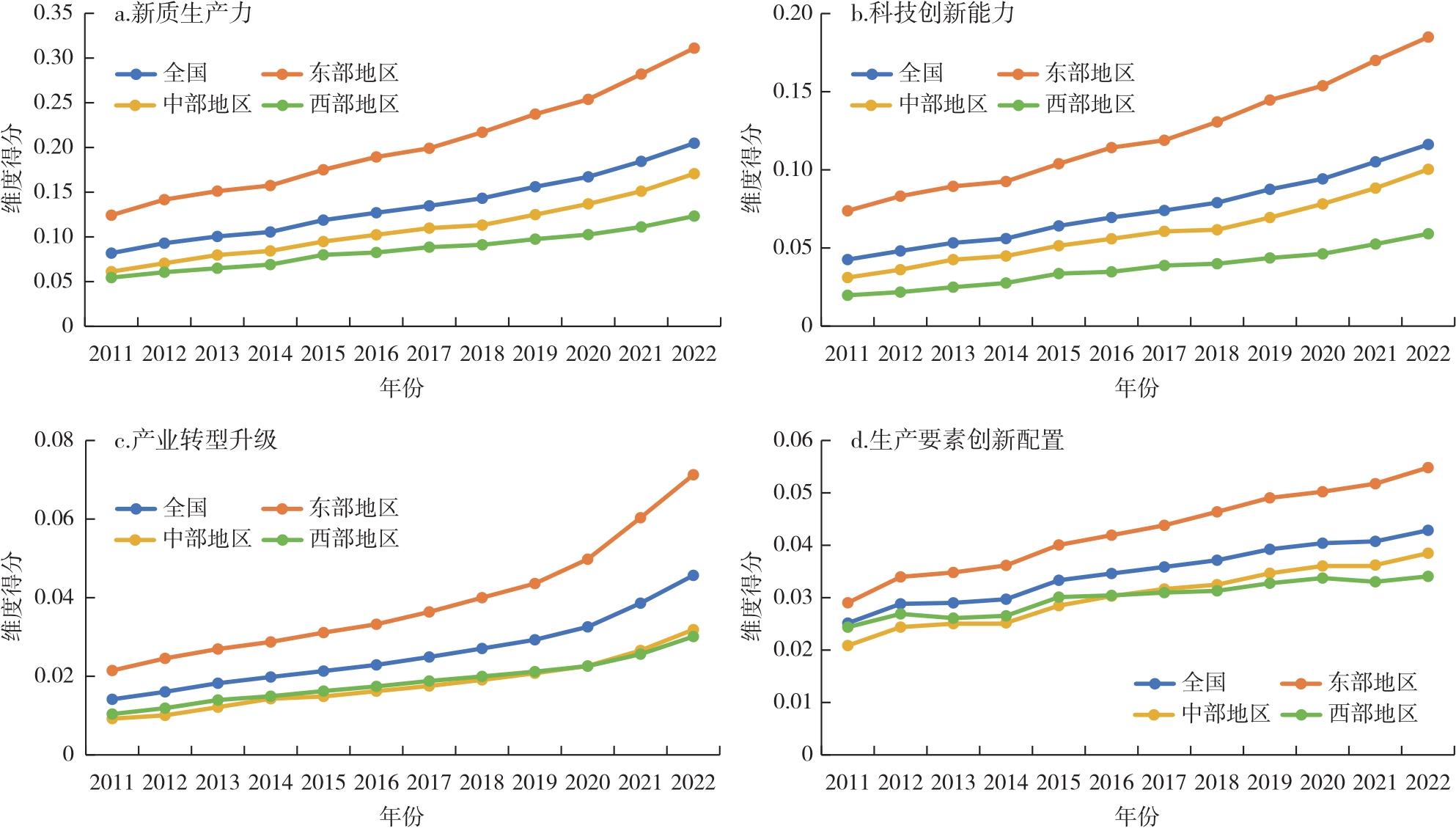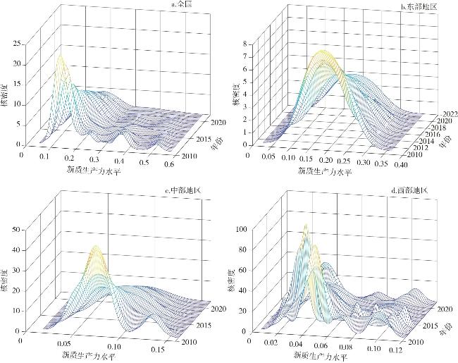发展新质生产力是推动高质量发展的内在要求和重要着力点。文章从科技创新能力、产业转型升级和生产要素创新配置3个维度构建评价指标体系测度2011—2022年中国30个省份的新质生产力水平,运用莫兰指数、核密度估计、Markov链转移矩阵、Dagum基尼系数和收敛模型揭示新质生产力发展的时空演变格局、地区差异与收敛性特征,并进一步借助障碍度模型和地理探测器模型探讨新质生产力发展的影响因素。 结果表明:①研究期内中国新质生产力水平随时间推移稳步上升,存在明显的“东高西低”递减式分布格局。②新质生产力发展水平存在正向空间关联性,邻接高水平地区对本地区新质生产力发展存在积极促进作用。③从区域差异看,新质生产力发展水平地区差距较大,区域间差异贡献率占首位、区域内差异次之,且全国及东、中、西三大地区均存在显著的绝对β收敛和条件β收敛特征。④从影响因素看,科技创新能力是培育、发展新质生产力的核心因素,对外开放、信息化、劳动力水平以及交通基础设施是导致全国及东、中、西三大地区新质生产力空间分异特征的主要驱动因子。