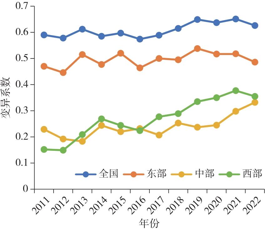 表4 2011—2022年中国新质生产力水平Dagum基尼系数及其分解结果Tab.4 Dagum Gini Coefficient of new quality productive forces from 2011 to 2022 in China |