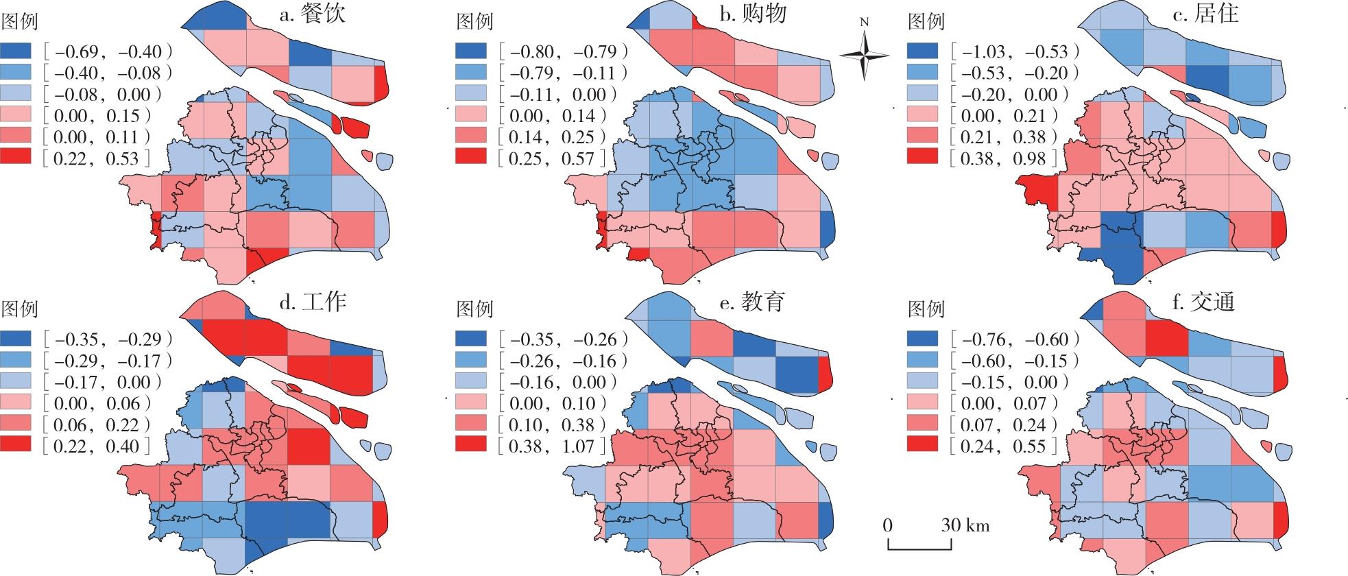 拟合参数 | 划分单元 | 餐饮 | 购物 | 居住 | 工作 | 教育 | 交通 |